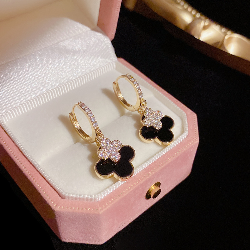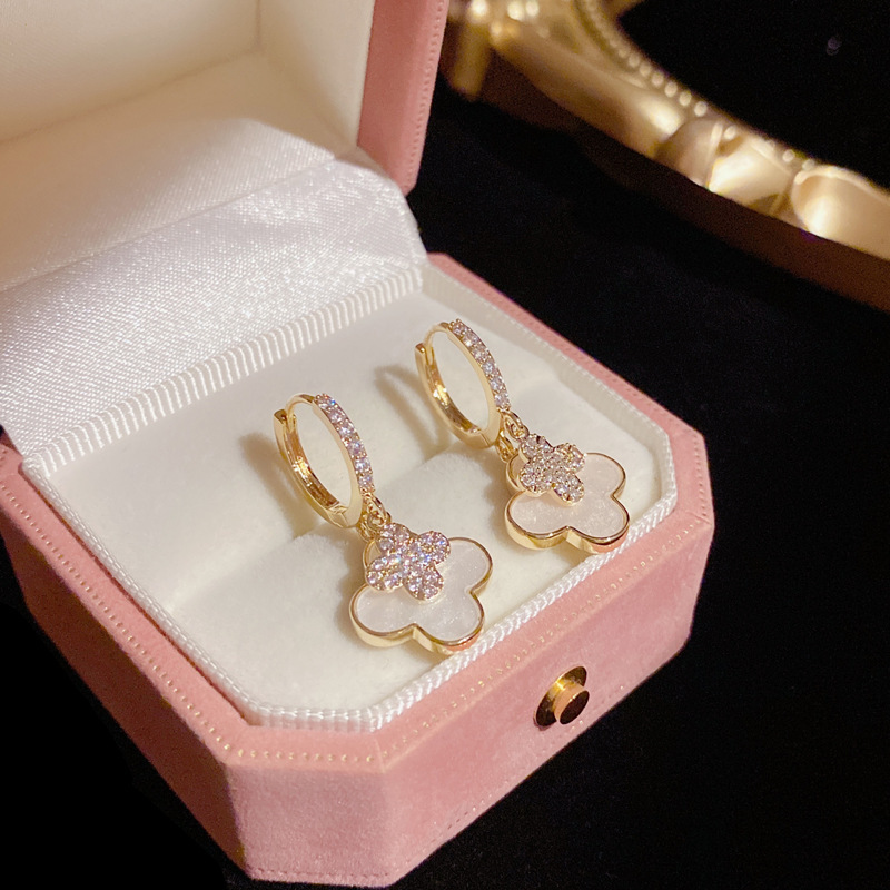 Korean 2025 New Arrival Diamond Ear Buckle Earrings Women's Four-leaf Flower Ear Buckle Niche Distinctive Exquisite Design Sense Atmospheric Earrings