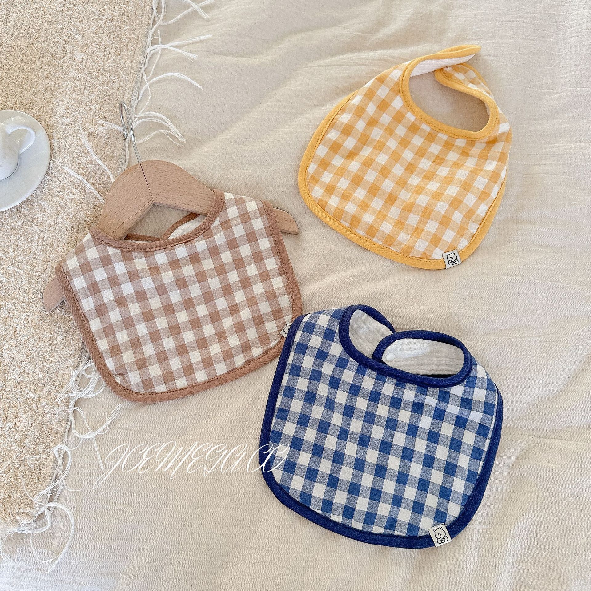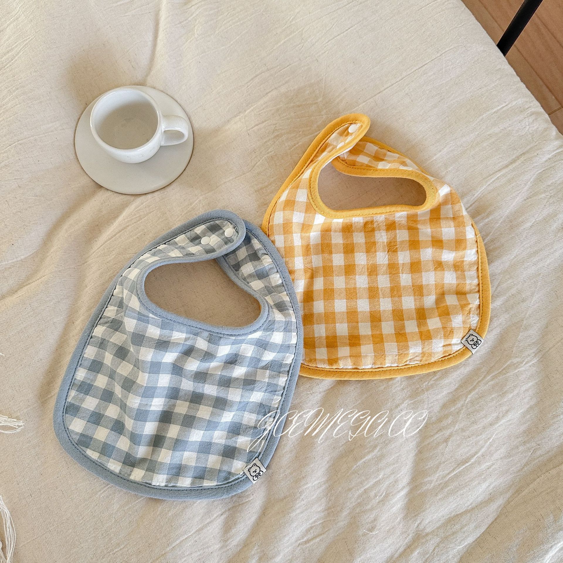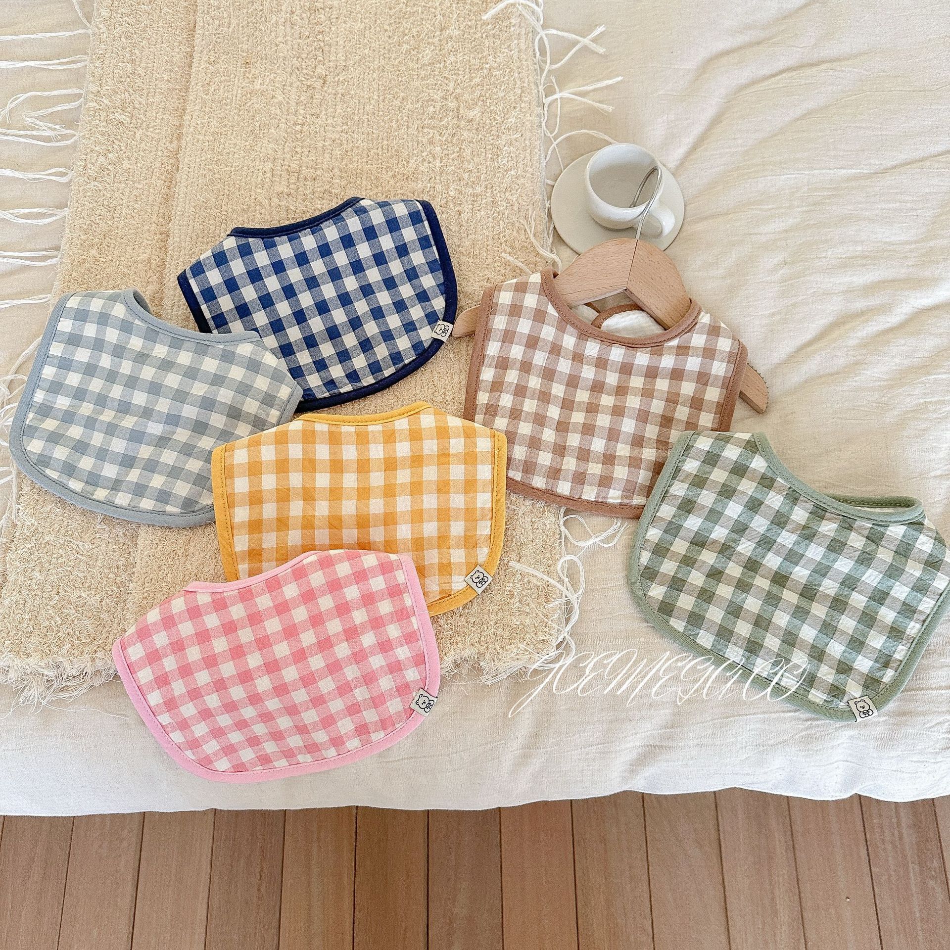Korean ins color plaid baby bib baby saliva towel cotton class A newborn U-shaped bib 0-1-2 years old