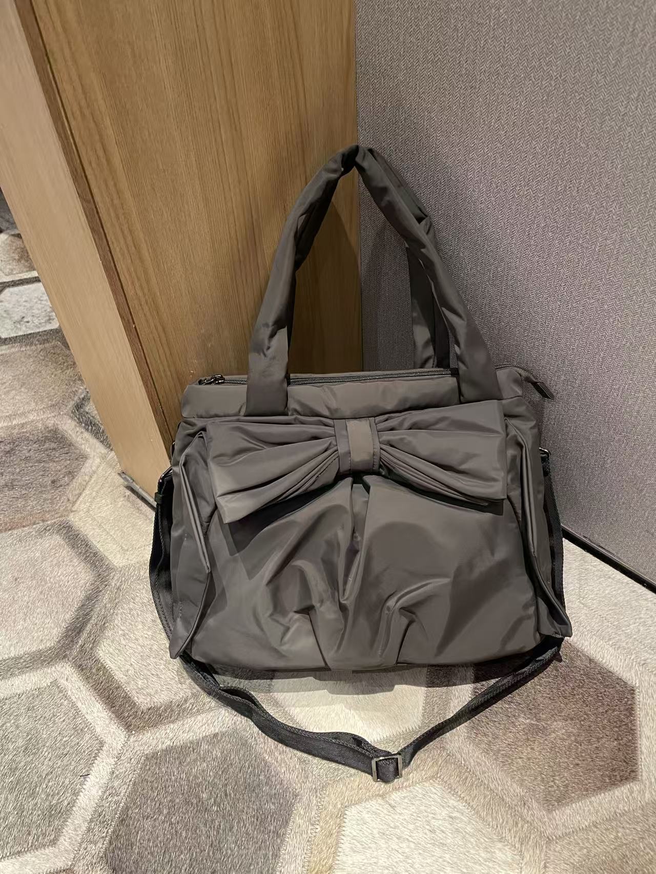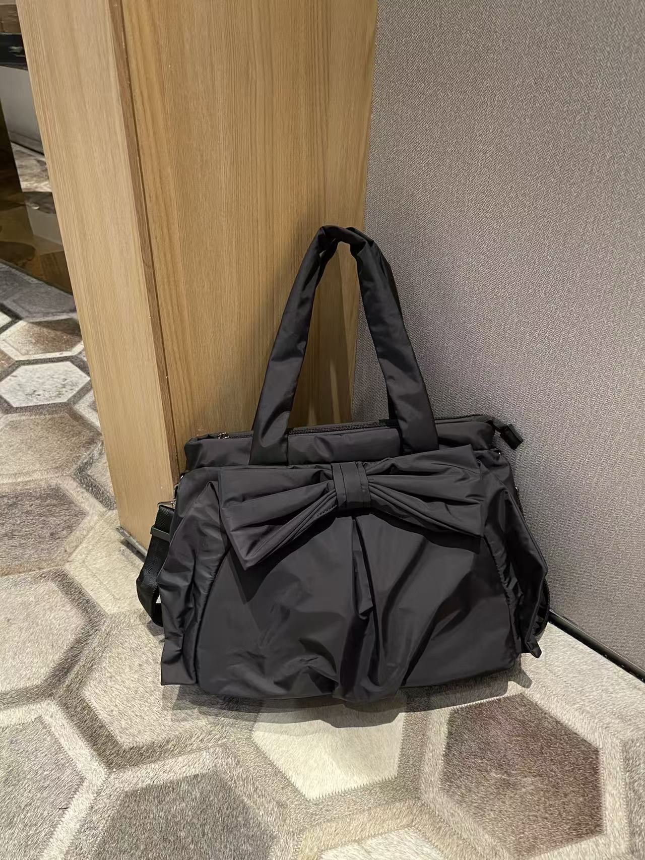 Korean Nylon Cloth Bow Hand-Held Crossbody Bag for Women 2025 New Large-Capacity Simple Commuter Shoulder Tote Bag
