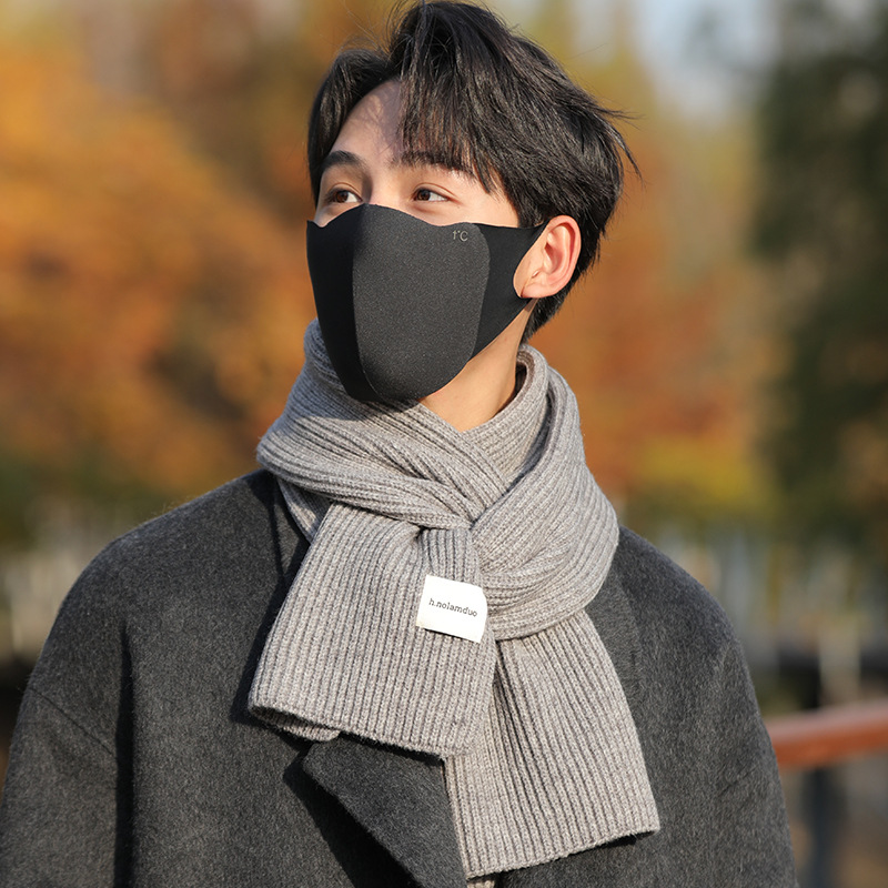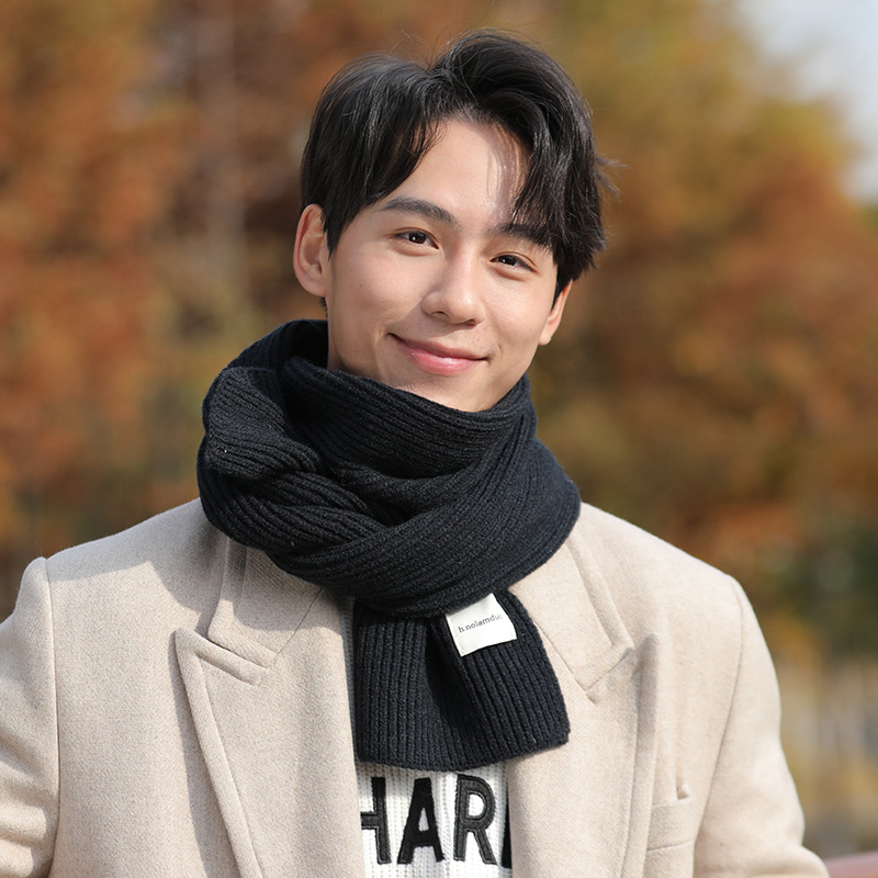 Korean Style Autumn and Winter Soft Knitted Wool Scarf Men's All-match Warm Student Solid Color Thickened Couple's Gift Trendy Scarf
