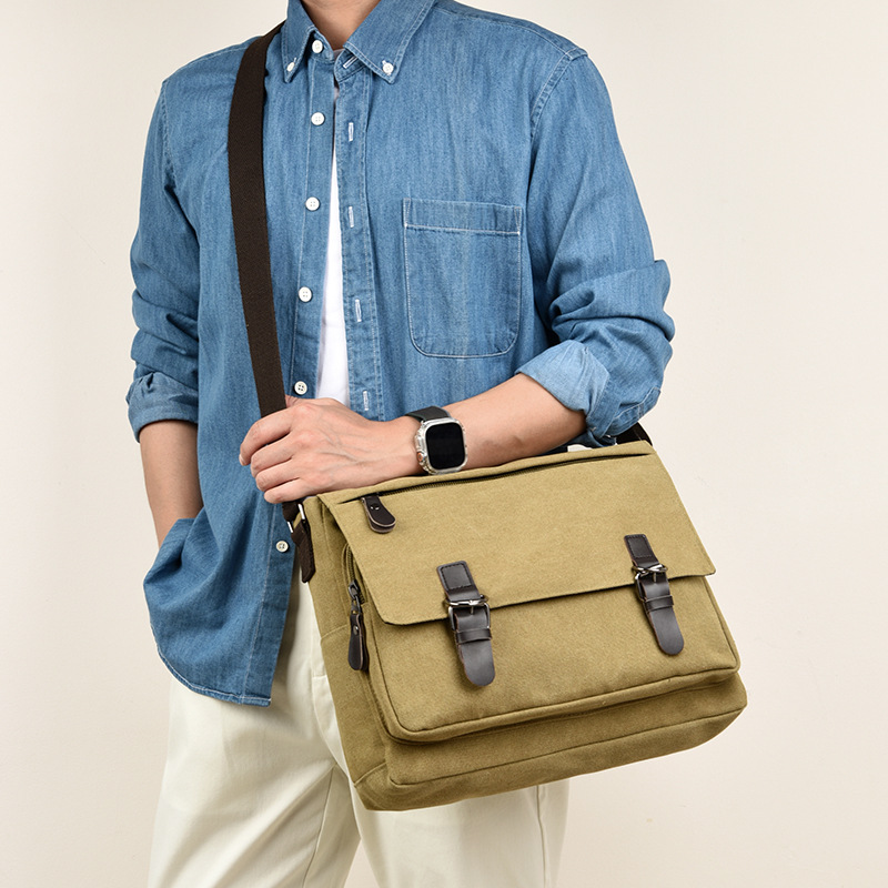 Korean Style Canvas Crossbody Bag Trendy Shoulder Bag Men's Large Capacity Student Computer Bag Camera Bag Large Factory Direct Sale