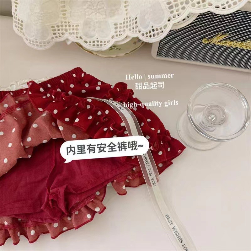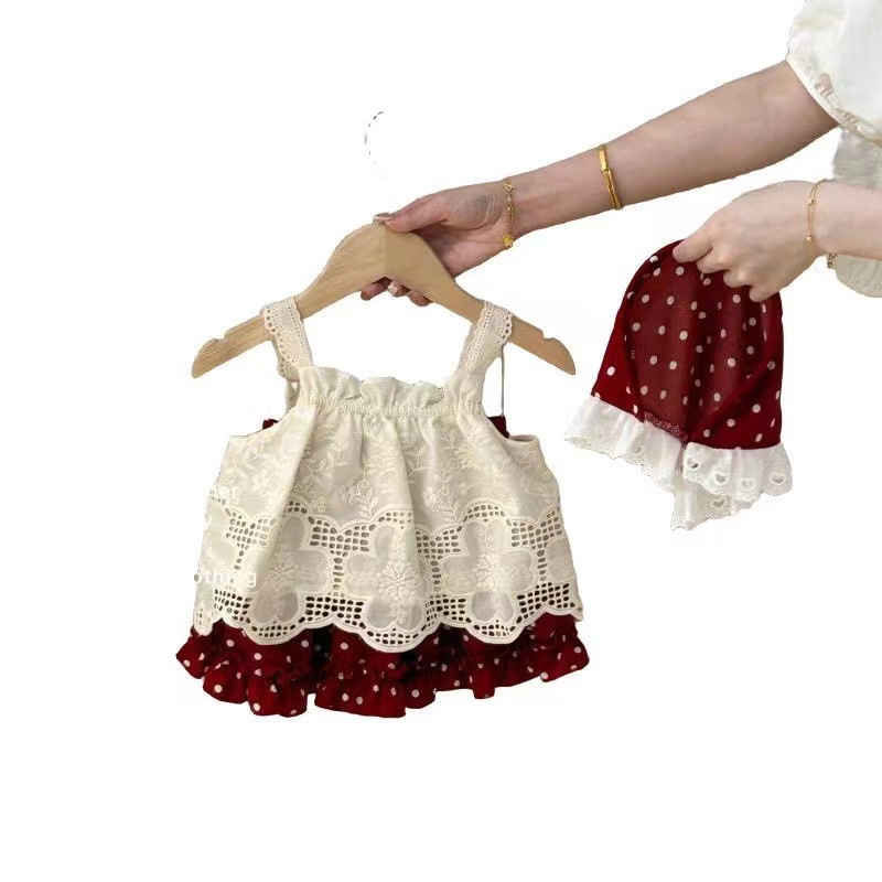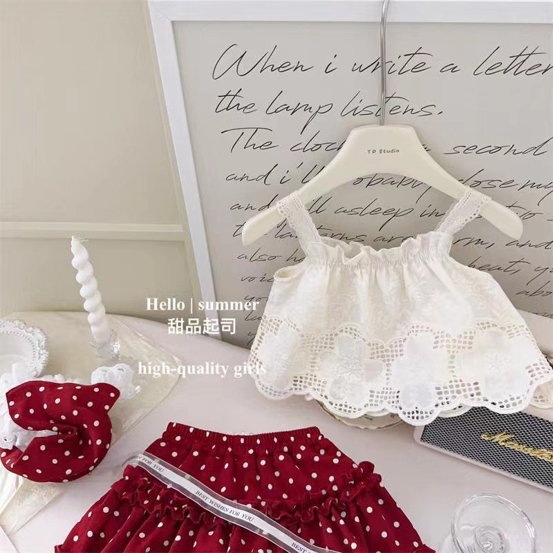 Korean Style Children's Wear Summer New Girls' Elegant Mori Little Red Riding Hood suit Little Girl Embroidered Vest Top Shorts