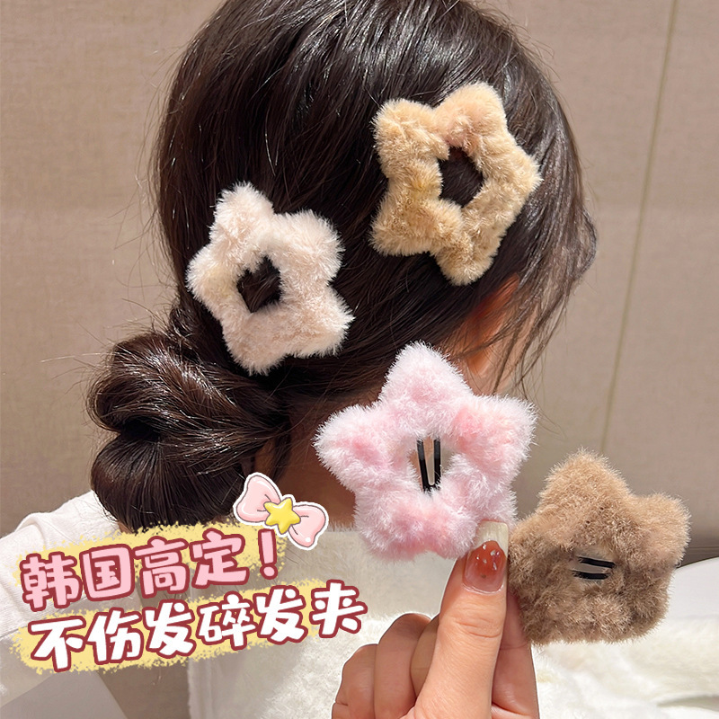 Korean-style Fluffy Rice Cafe Simple Star Clip Ins Girl Plush Five-pointed Star Side Clip Cute Hair Accessories Hairpin