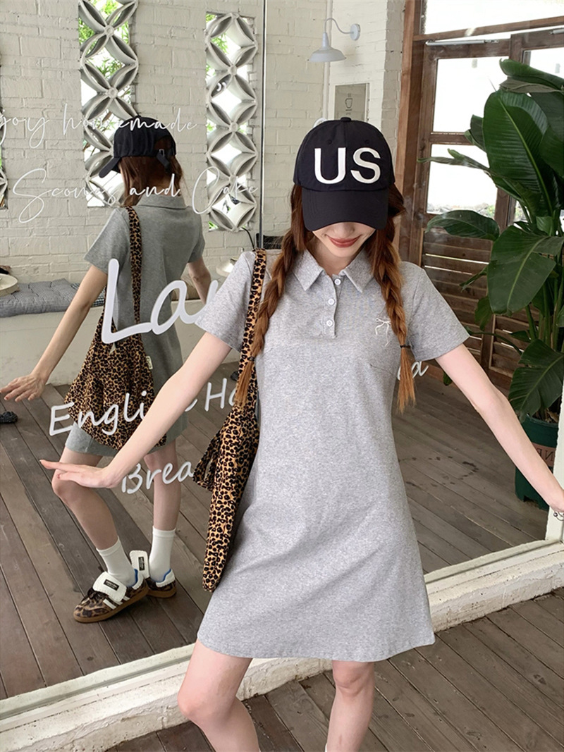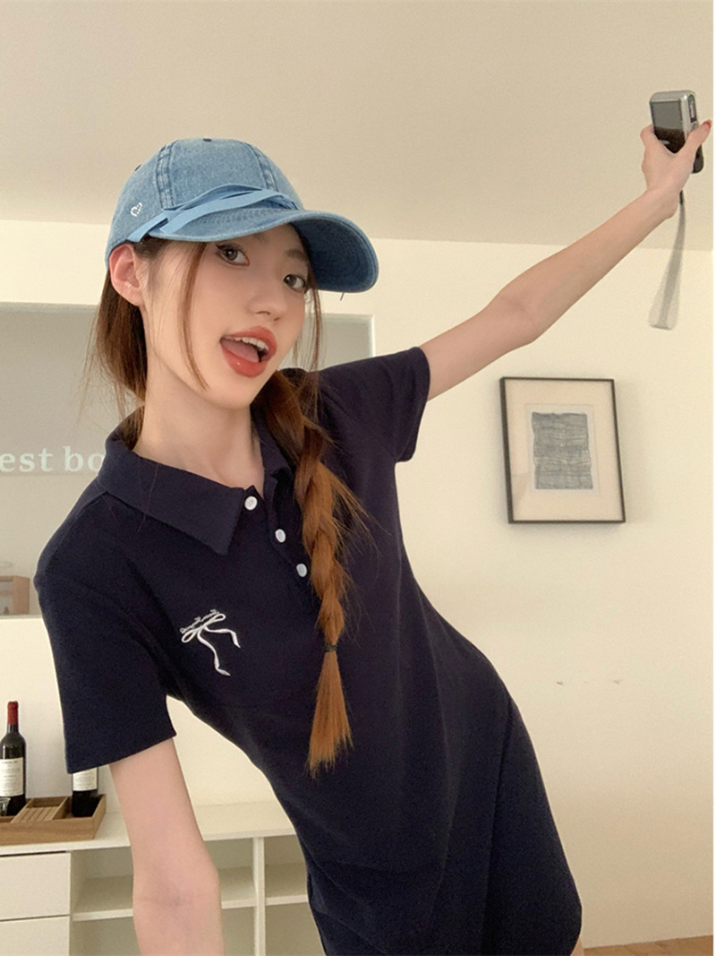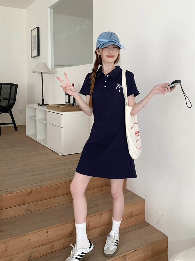 Korean Style Polo Collar Age-reducing Embroidered Short-sleeve dress Women's Summer Sporty Fashionable Tight Waist Slimming Niche Skirt