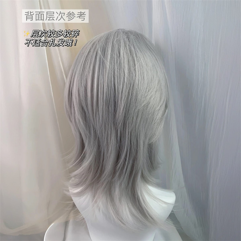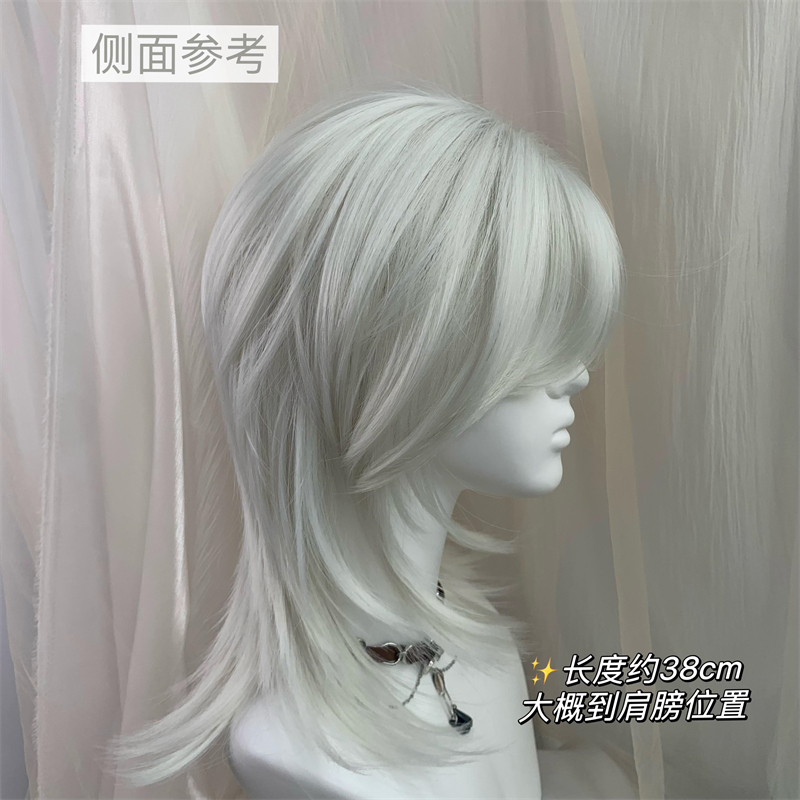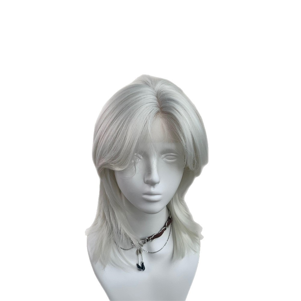 Lace Front Silver Moon Silver Wolf Tail Mullet Hairstyle Handsome Layered Short Hair Versatile Cosplay Wig Full Headpiece
