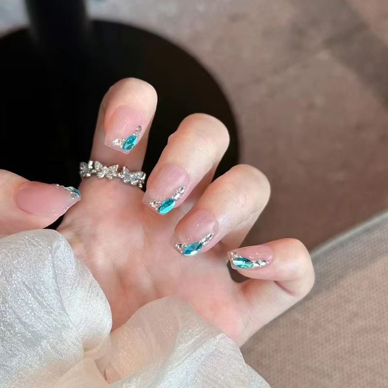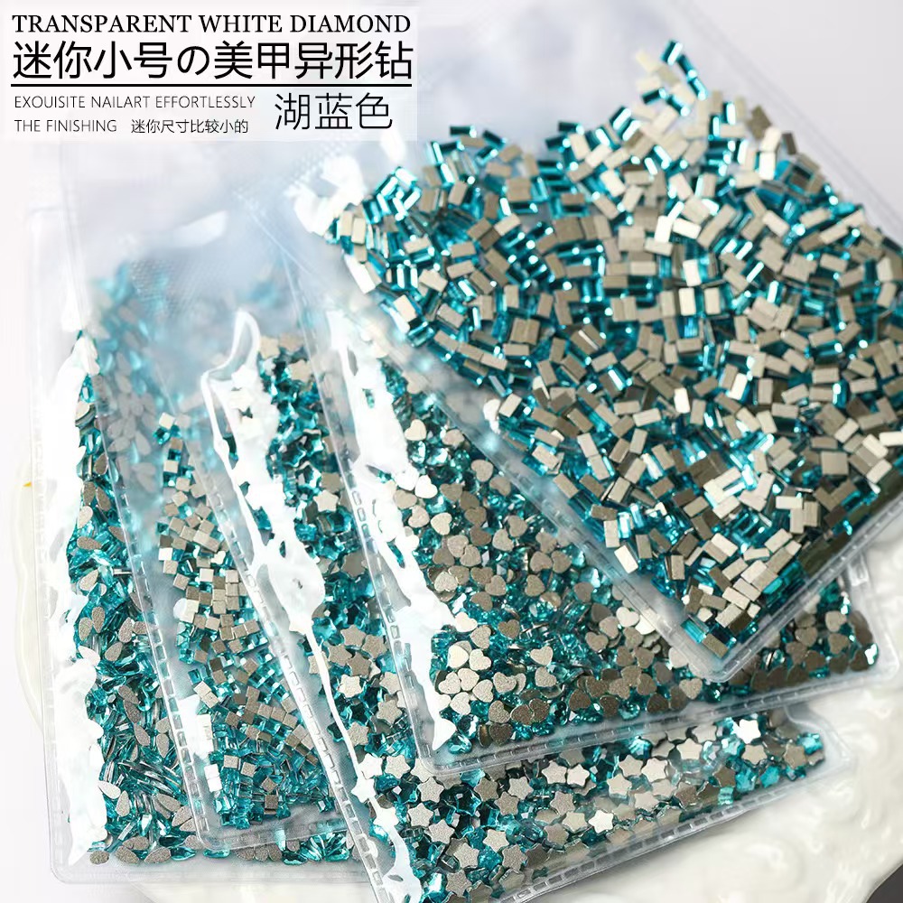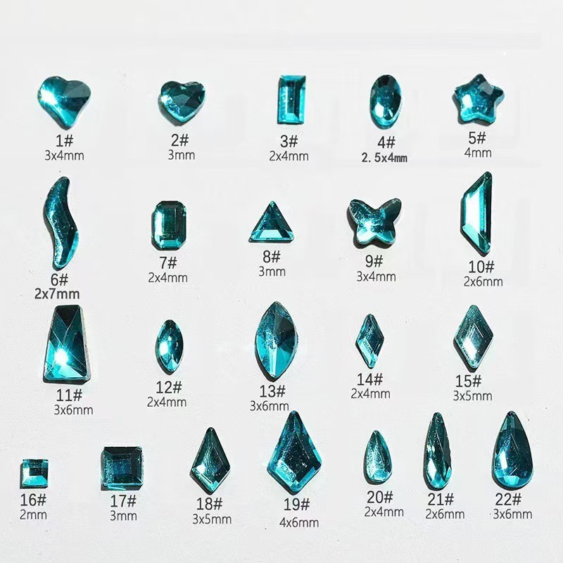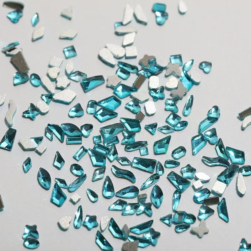 Lake blue flat shaped diamond diamond horse eye water drop love nails k9 glass nail jewelry wholesale