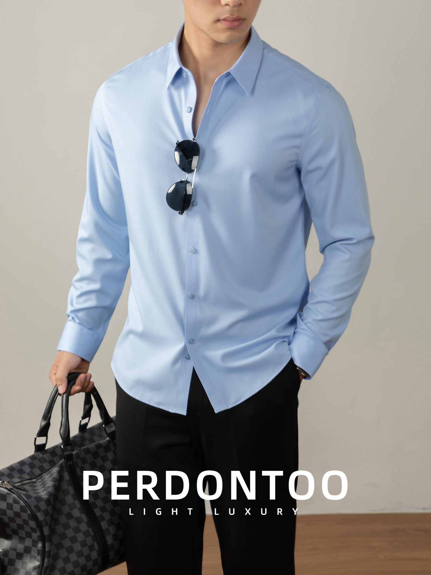 [Lanxess Modal] 60-Count Seamless No-Iron Shirt Men's Spring & Fall Classy Light Business Long-Sleeved Pure Color Shirt