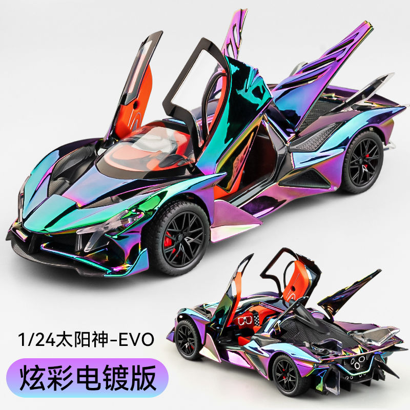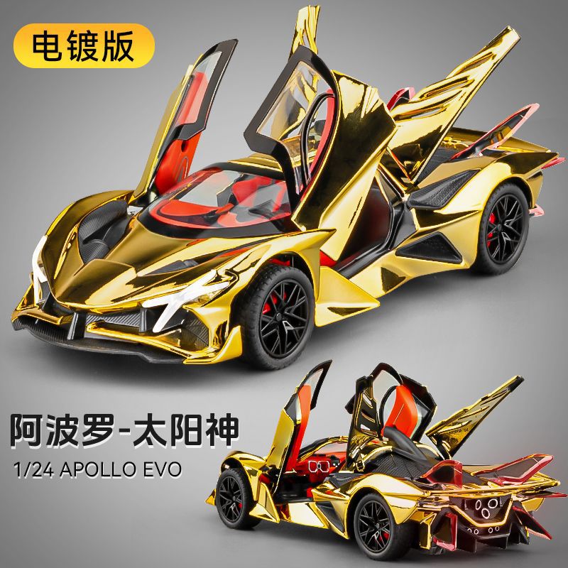 Large 1:24 Electroplated Apollo Sun God Sound and Light Back Car Children's Toy Car Simulation Alloy Car Model