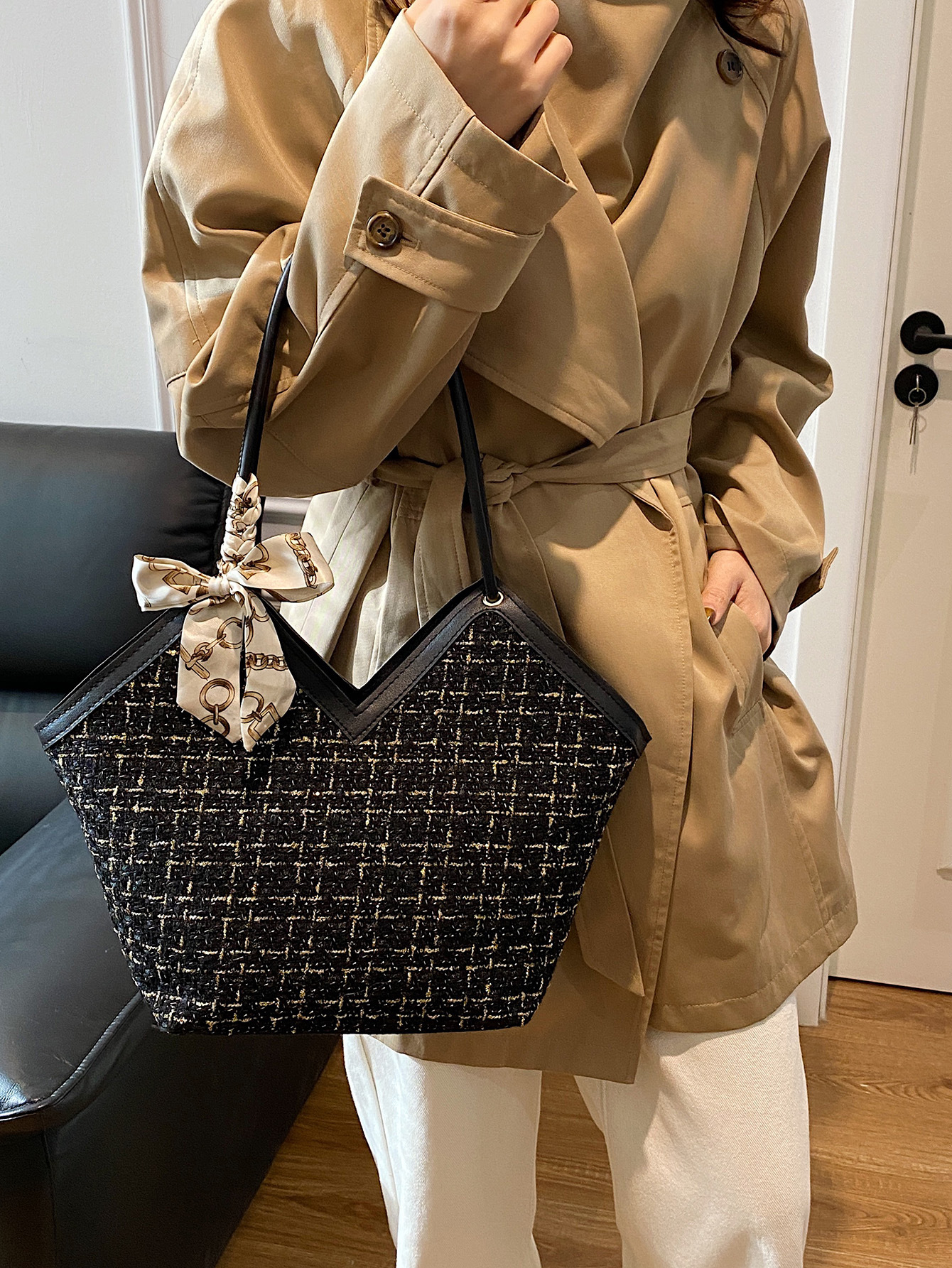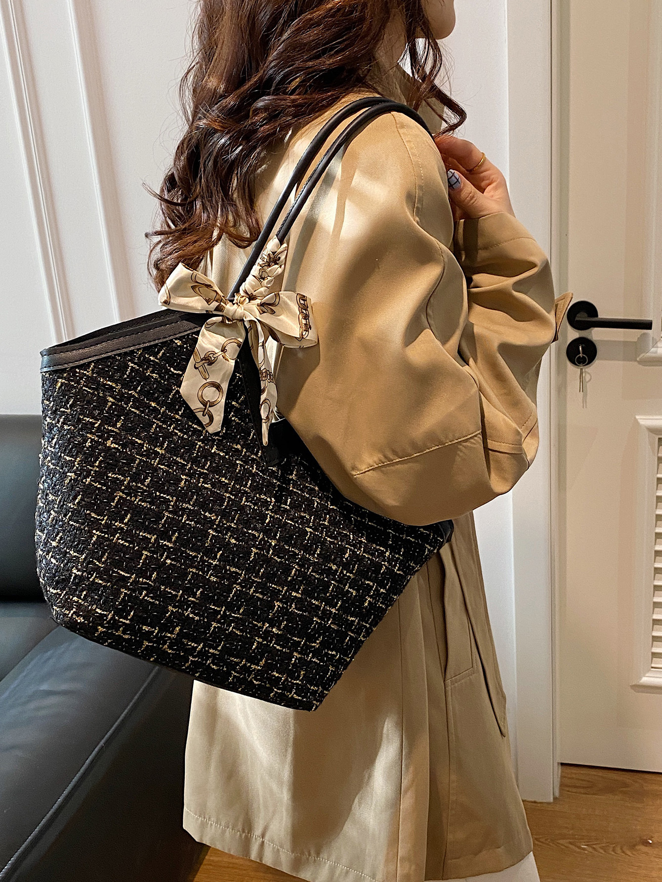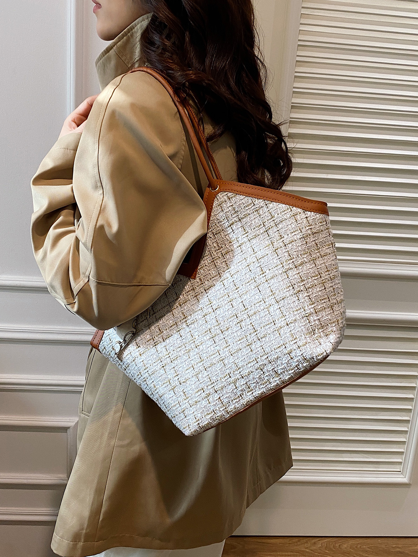Large Capacity Tote Bag Korean Style Commuter Underarm Bag Women's 2025 New Autumn and Winter Stitching Color Contrast Plaid Shoulder Bag