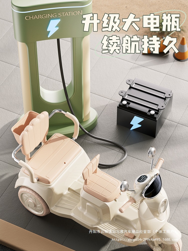 Large Children's Electric Motorcycle Tricycle for Boys and Girls, Remote Control Toy Car, Can Seat Two Children, Wholesale
