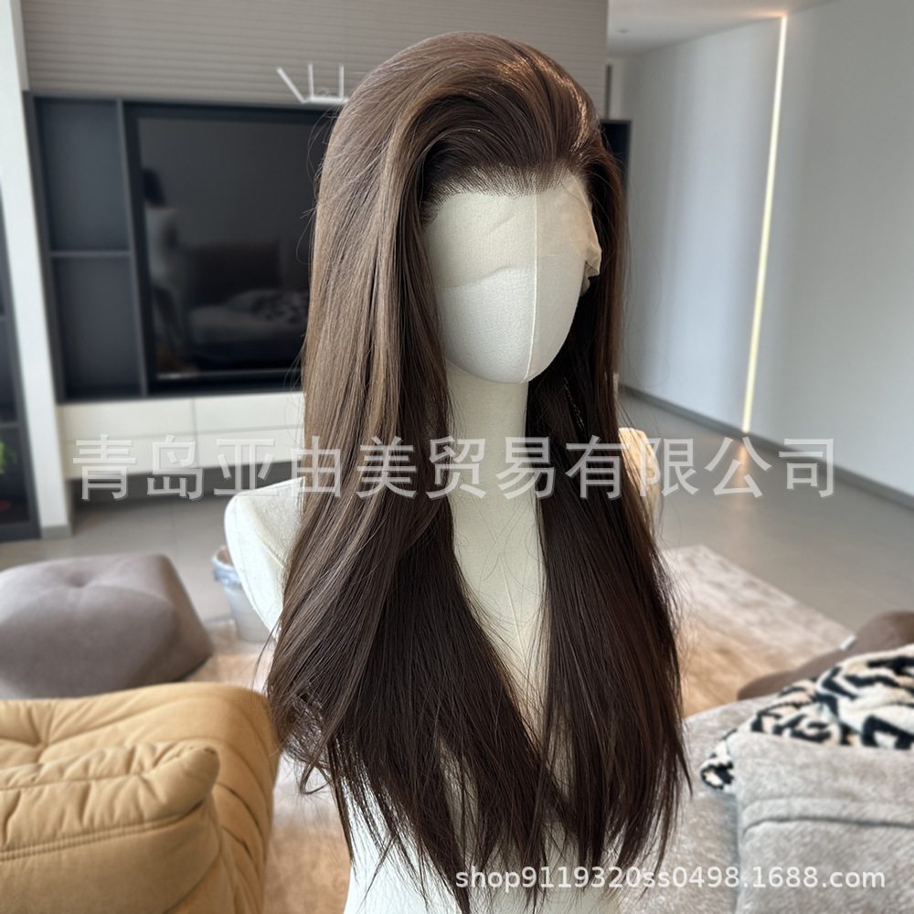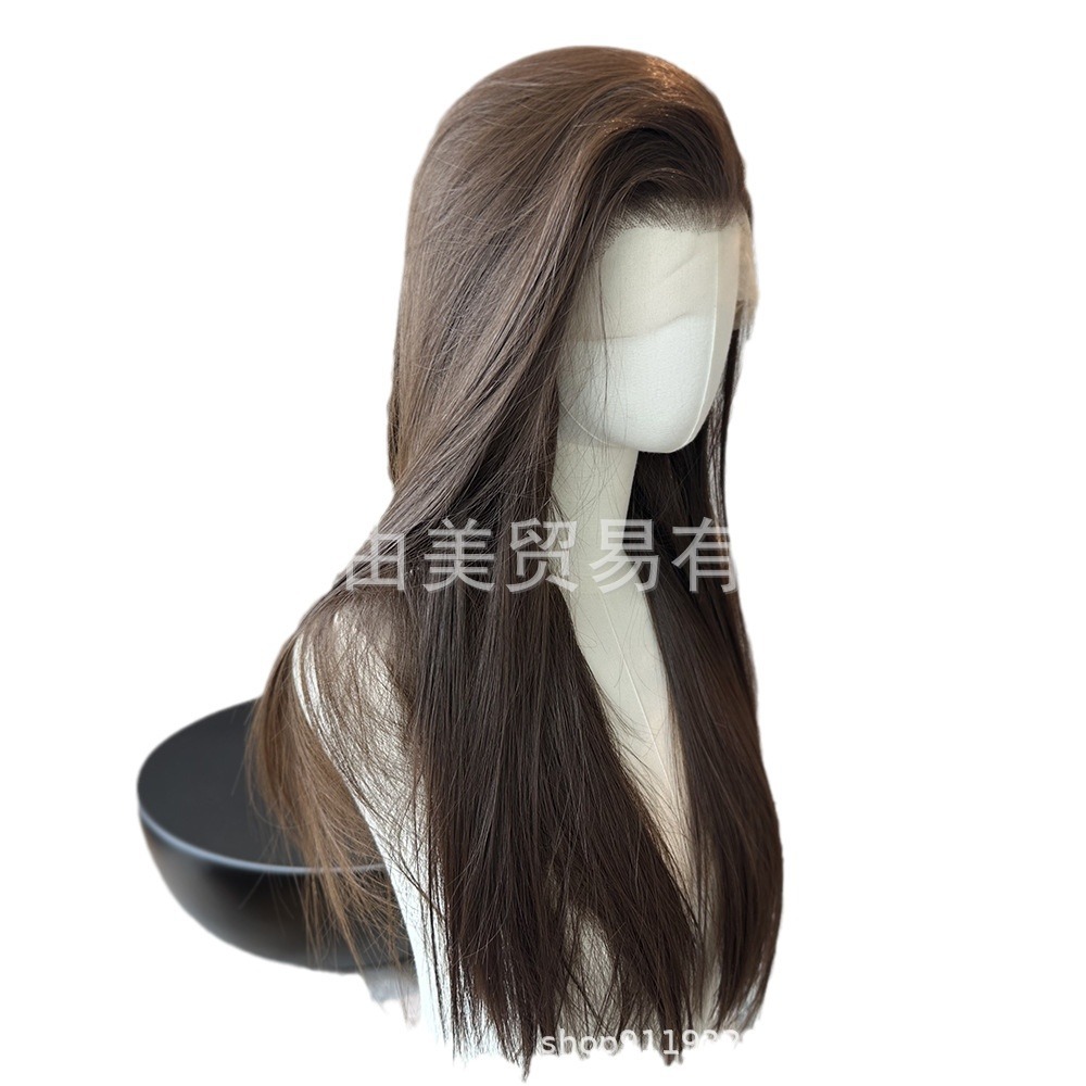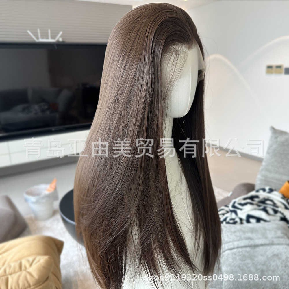 Large Lace 13*4 Front Lace Black Tea Brown Wig Female Internet Red Goddess 18 Inch Long Straight Hair Natural Hallline