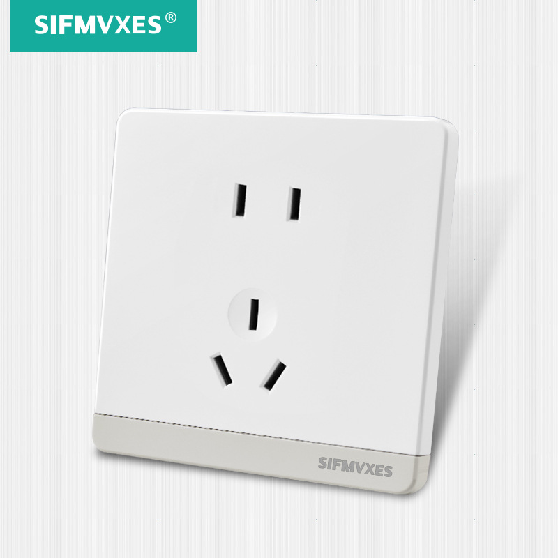 Large plate frameless White switch Silver Point phosphor copper wall switch socket five-hole socket power supply wall socket