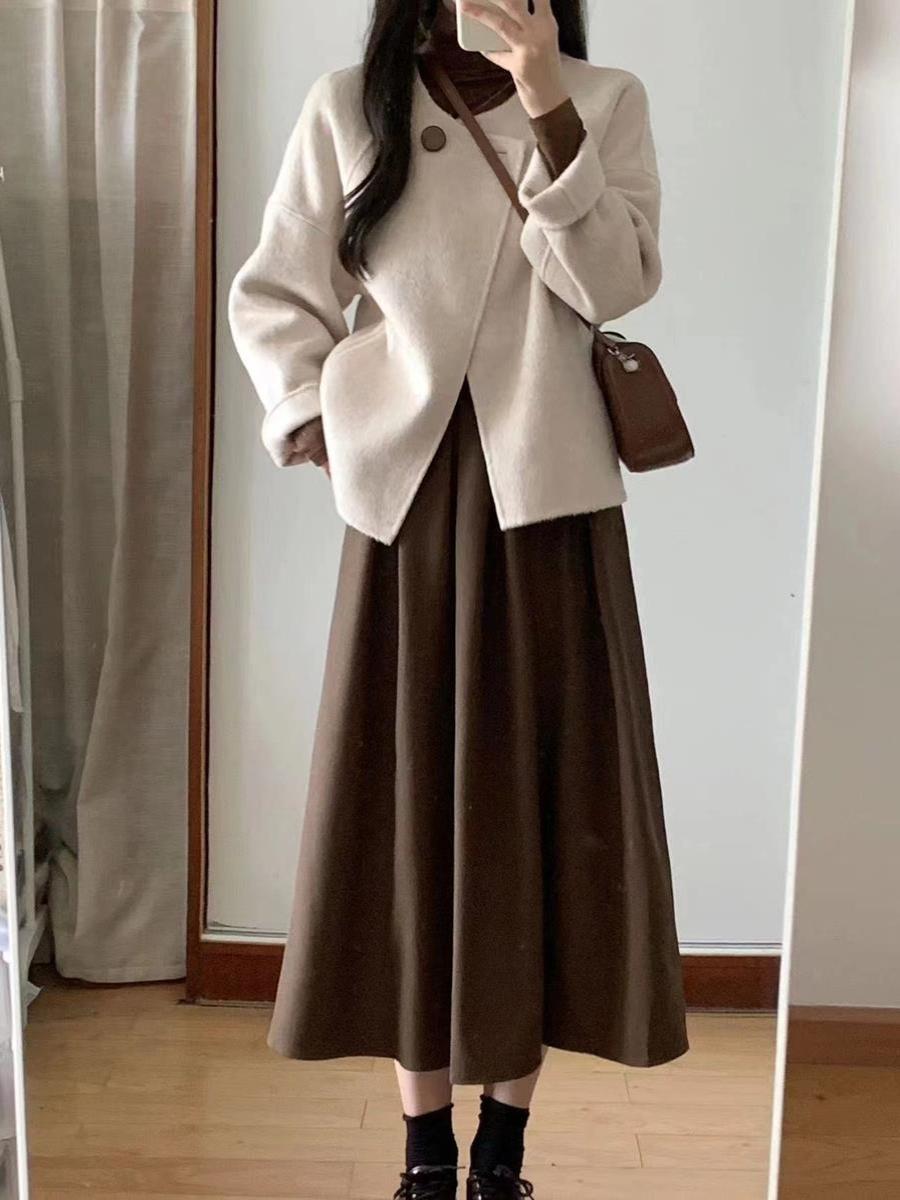 Late Autumn and Winter Small Fragrant Style Knitted Jacket for Women with a High-End Feel and a Complete Set of Slightly Fat and Slimming Look Dress Suits