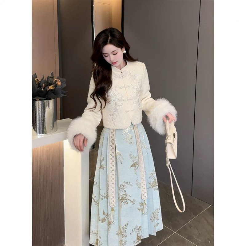 Late autumn and winter wear with a set of high-end sense to wear a small new Chinese style horse-faced skirt two-piece suit for women