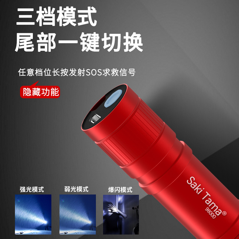LED strong light small flashlight USB rechargeable multifunctional mini student portable work light Wholesale gift
