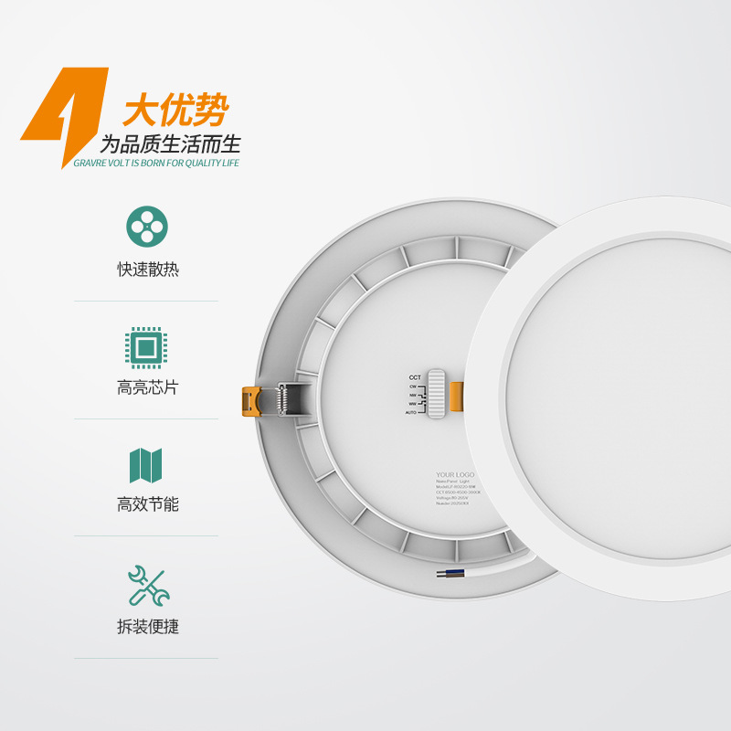 LED three-color dimming panel light ceiling lamp embedded LED downlight 6W12W18W24W living room aisle lighting