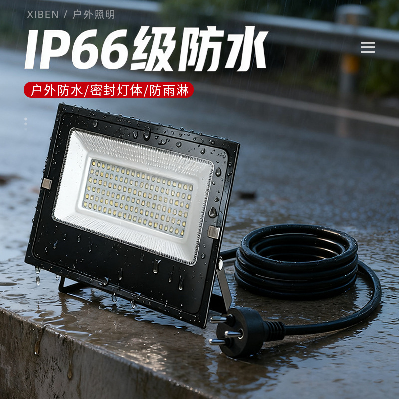 Integrated Led Floodlight Ip66 with Bracket and Cable, Portable, No Installation Required, Mobile Engineering Lighting, Plug and Play