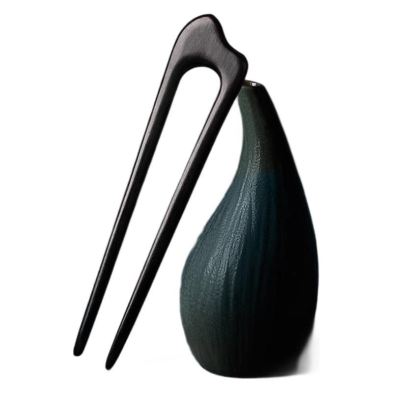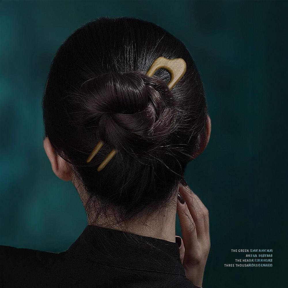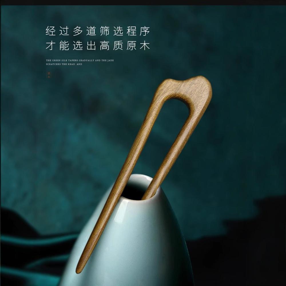 Lengthen U-shaped Double Hairpin Women's New Chinese Style High-end Hairpin Antique Green Sandalwood Hairpin Simple for Girlfriend