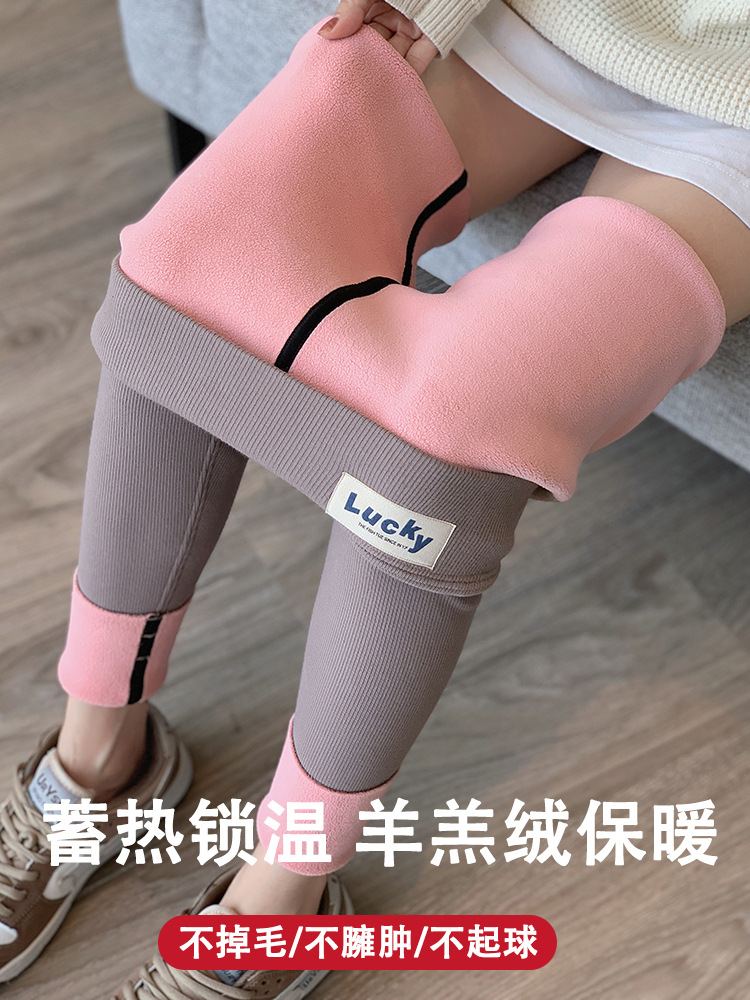 Vertical Striped Lamb Wool Leggings for Women, Suitable for Wearing Outside in Winter, Fleece-Lined, Thickened, High-Waisted, Warm Cotton Pants, Tummy Control Pants, Can Be Worn Outside