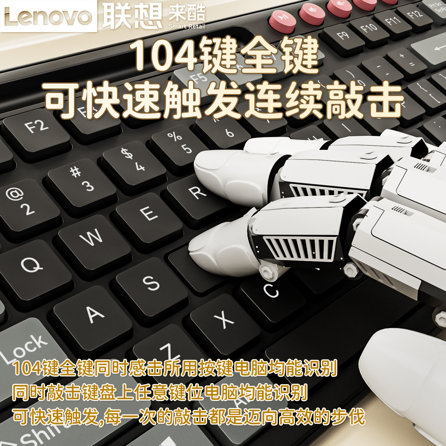 Lenovo Laiku Keyboard and Mouse Set High-Value Keyboard and Mouse One-Piece Wired Gaming Silent Keyboard Full-Key Dedicated