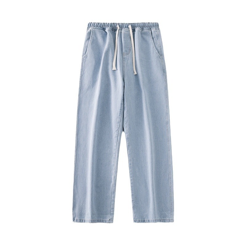 Boutique Men's Cross-Border Jeans Men's Versatile Solid Color Loose Straight High Street Elastic Waist Casual Wide Leg Pants