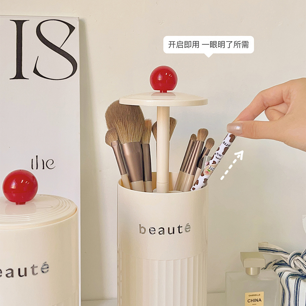 Lifting Cosmetic Brush Storage Cylinder Dust-proof Advanced Sense Covered Dressing Table Desktop Pressing Brush Cosmetic Storage Box