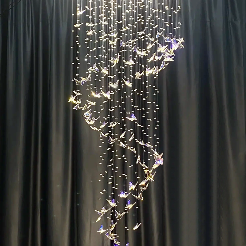 Light Luxury Crystal Lamp Hollow Modern Minimalist European Style Hotel Villa Spiral Staircase Chandelier Butterfly Crystal Lamp Decoration