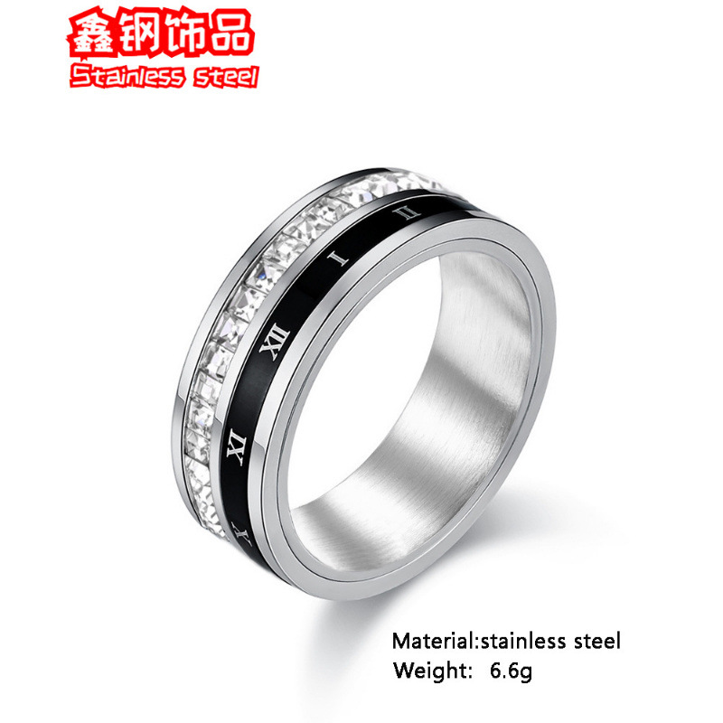 Light Luxury Style Full Square Diamond Roman Numerals Rotatable Titanium Steel Ring for Men and Women Personalized Wedding Ring Accessories Jewelry