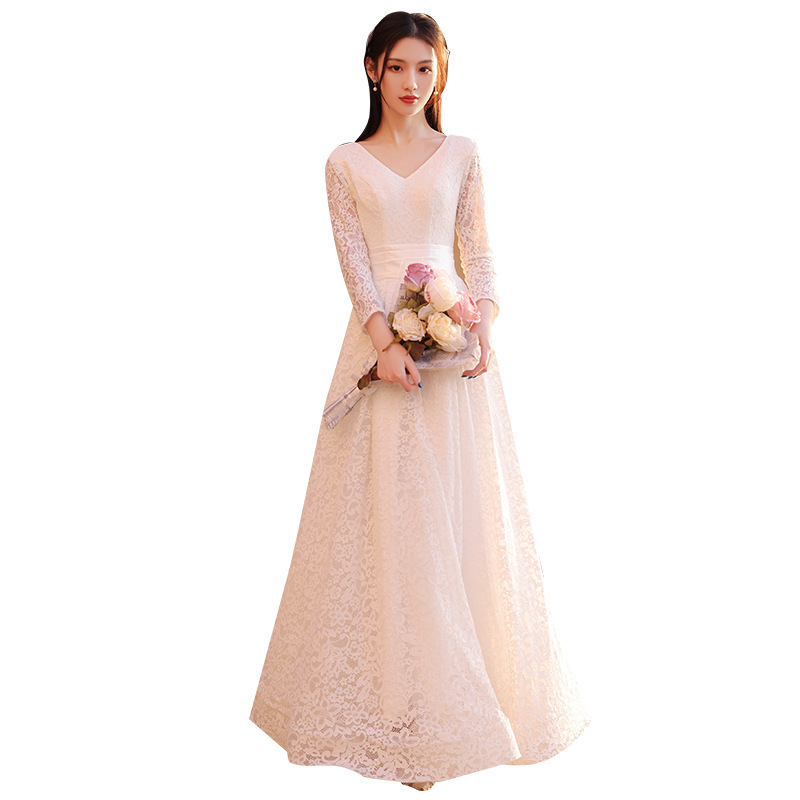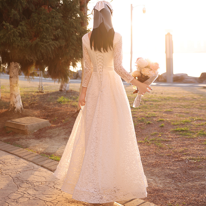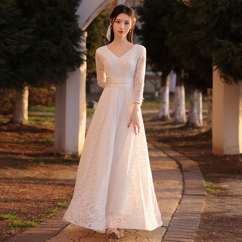 Light Wedding Dress, Small Formal Dress, Everyday Travel Photography Dress, Dress for Marriage Registration, Elegant Forest Style, Super Fairy-Like, Autumn and Winter Simple Lace Dress for Women