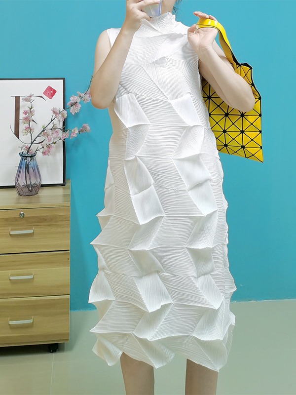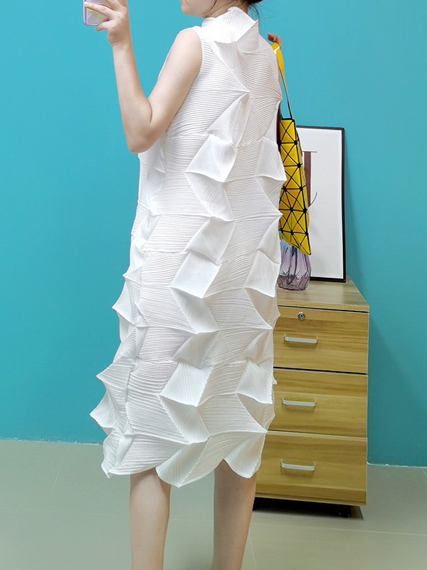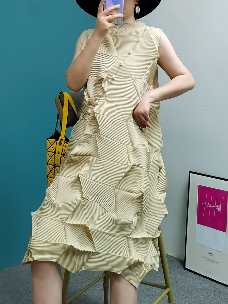 Lingying Pleated L119 [in stock] Miyake Diamond Vest dress Fashion Design 2025 Summer Collar
