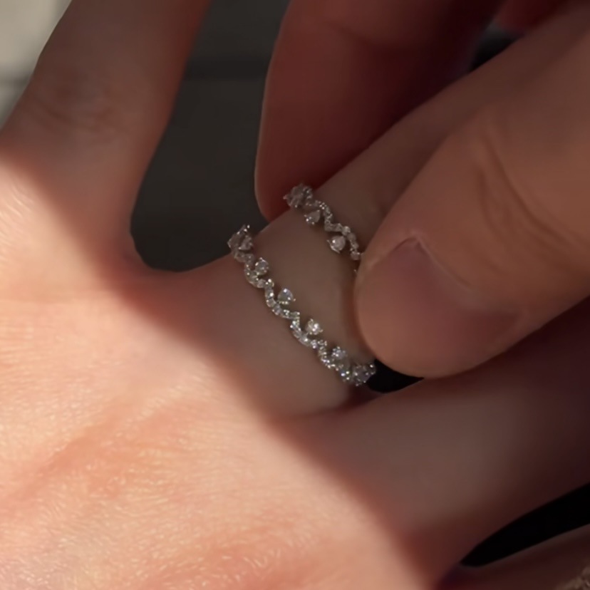 Little Red Book Same Style Small Crown Lace Rai Diamond Ring Women's Light Luxury High-end Finger Ring Exquisite All-match Stacked Finger Ring