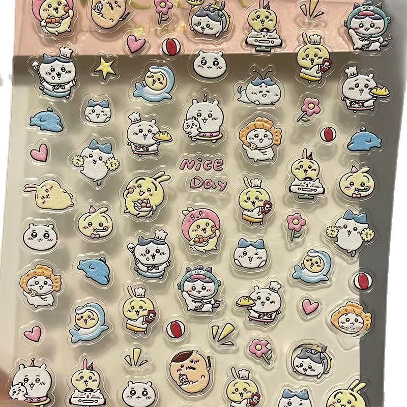 Little Red Book's Same Style Chiikawa Nail Art Stickers Chiikawa Embossed Stereo Pen Holder Stickers Water Cup