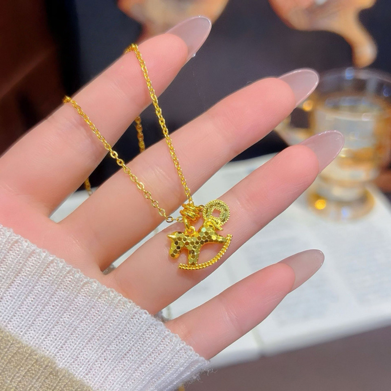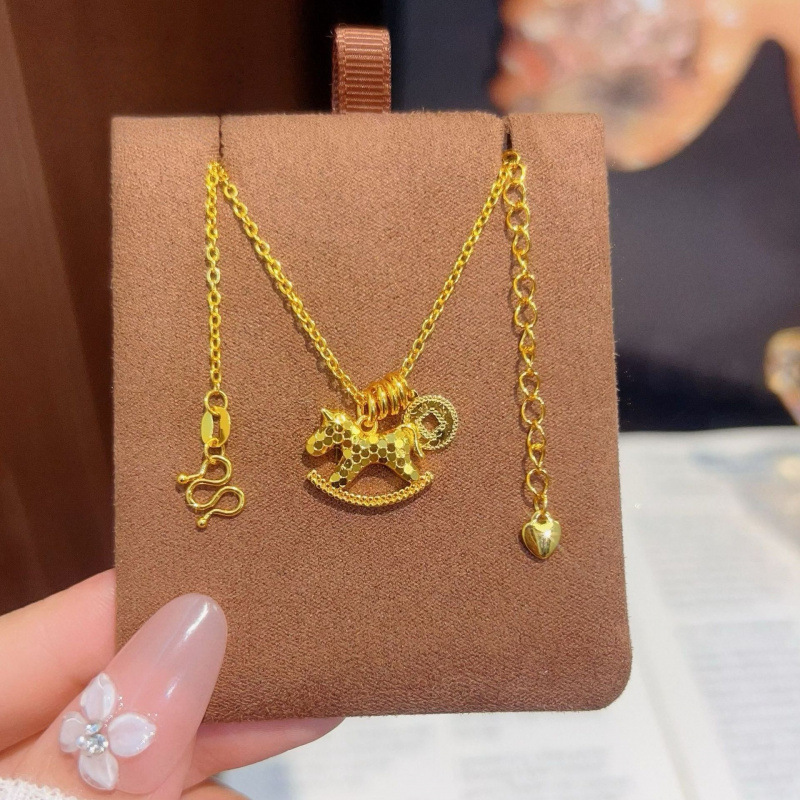 Little Red Book's Same Style Sparkling Necklace for Women with Light Luxury Design, Crushed Ice Trojan Horse Copper Coin Clavicle Chain