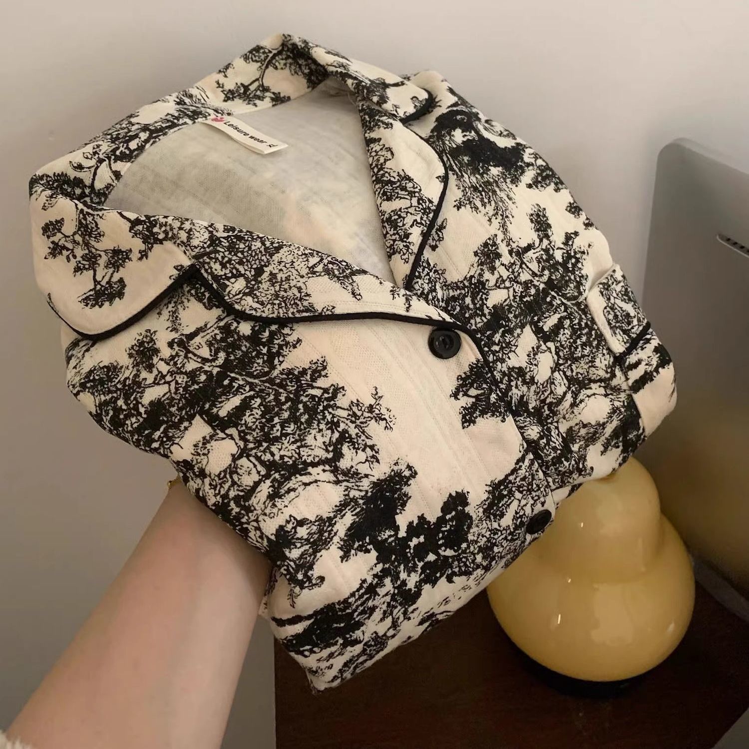 Live Spring and Autumn New Pajamas Women's Long-sleeved Thin Loose Women's Lace Home Clothes Internet Celebrity Two-piece Outfit