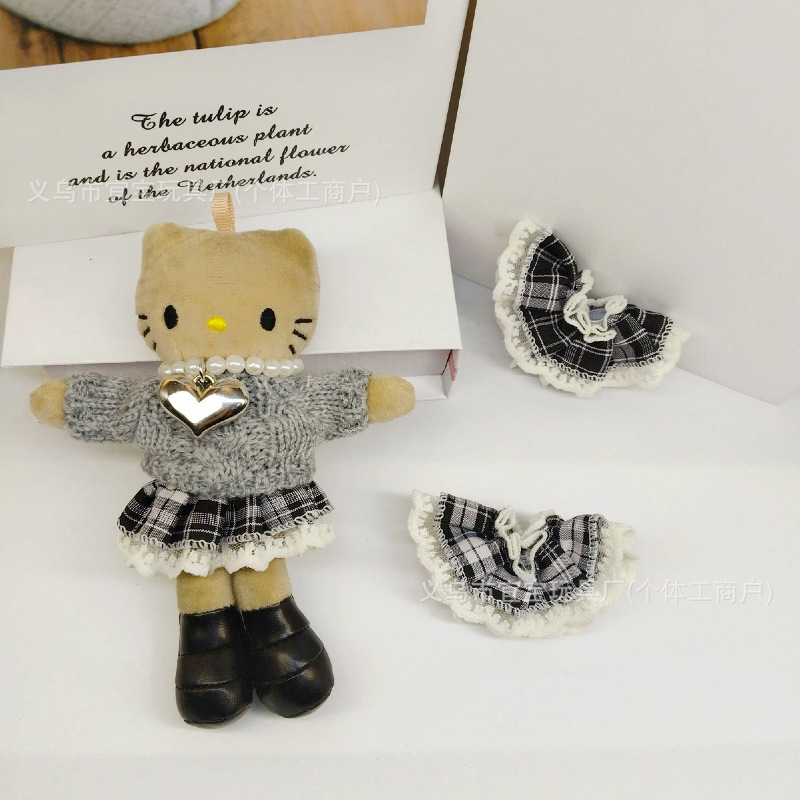 Long-Legged Kt Cute Retro Maillard Style Japanese Style Plaid Lace Short Skirt Bag Pendant with Decorative Baby Clothes
