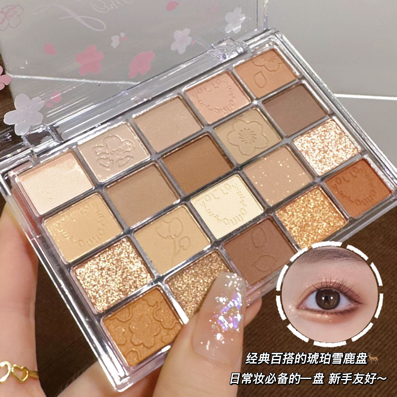 Lovekou 20-Color Peach Blossom and Cherry Blossom Highlighter, Gradient Highlighter, Brightening Colorful Matte Multi-Color Makeup Eyeshadow