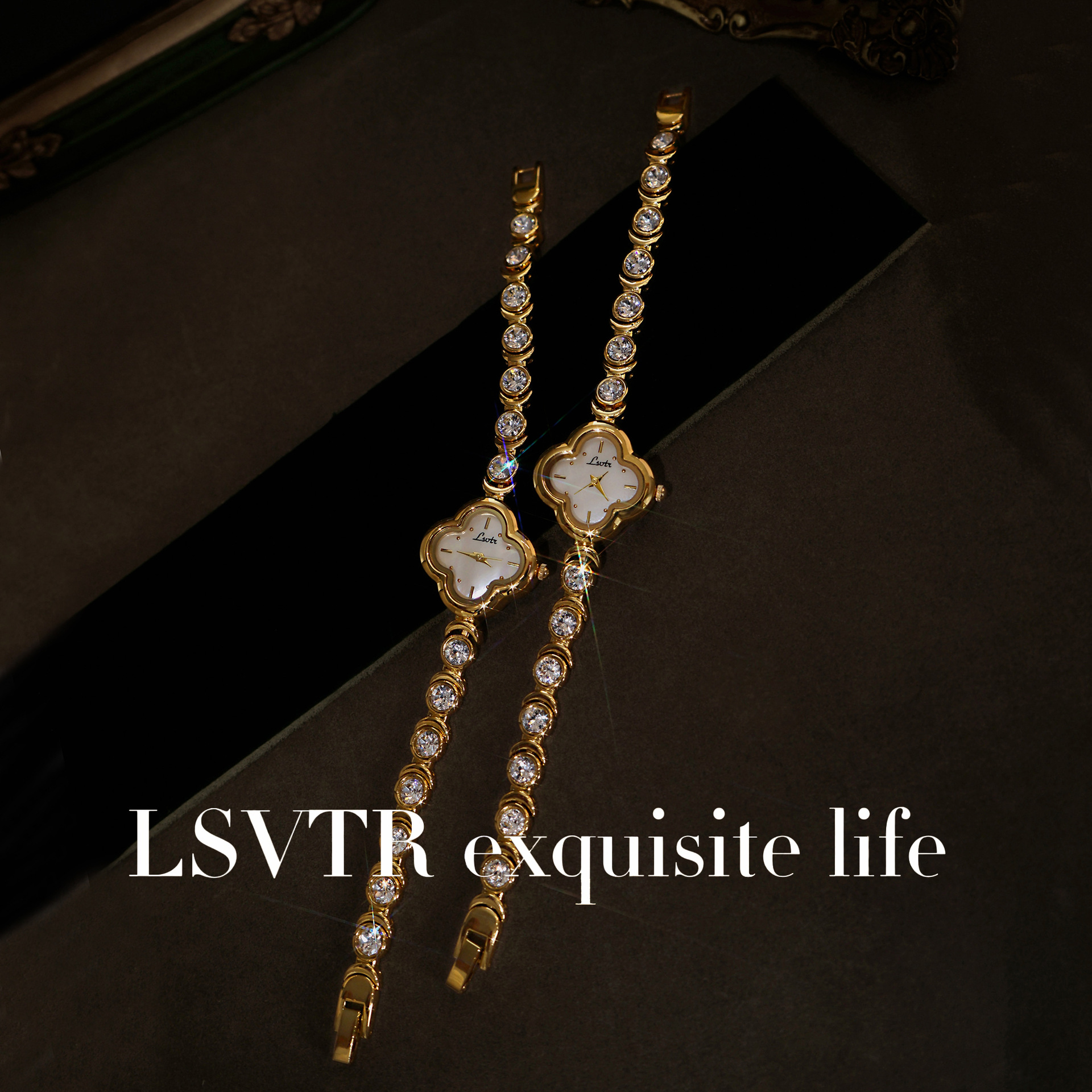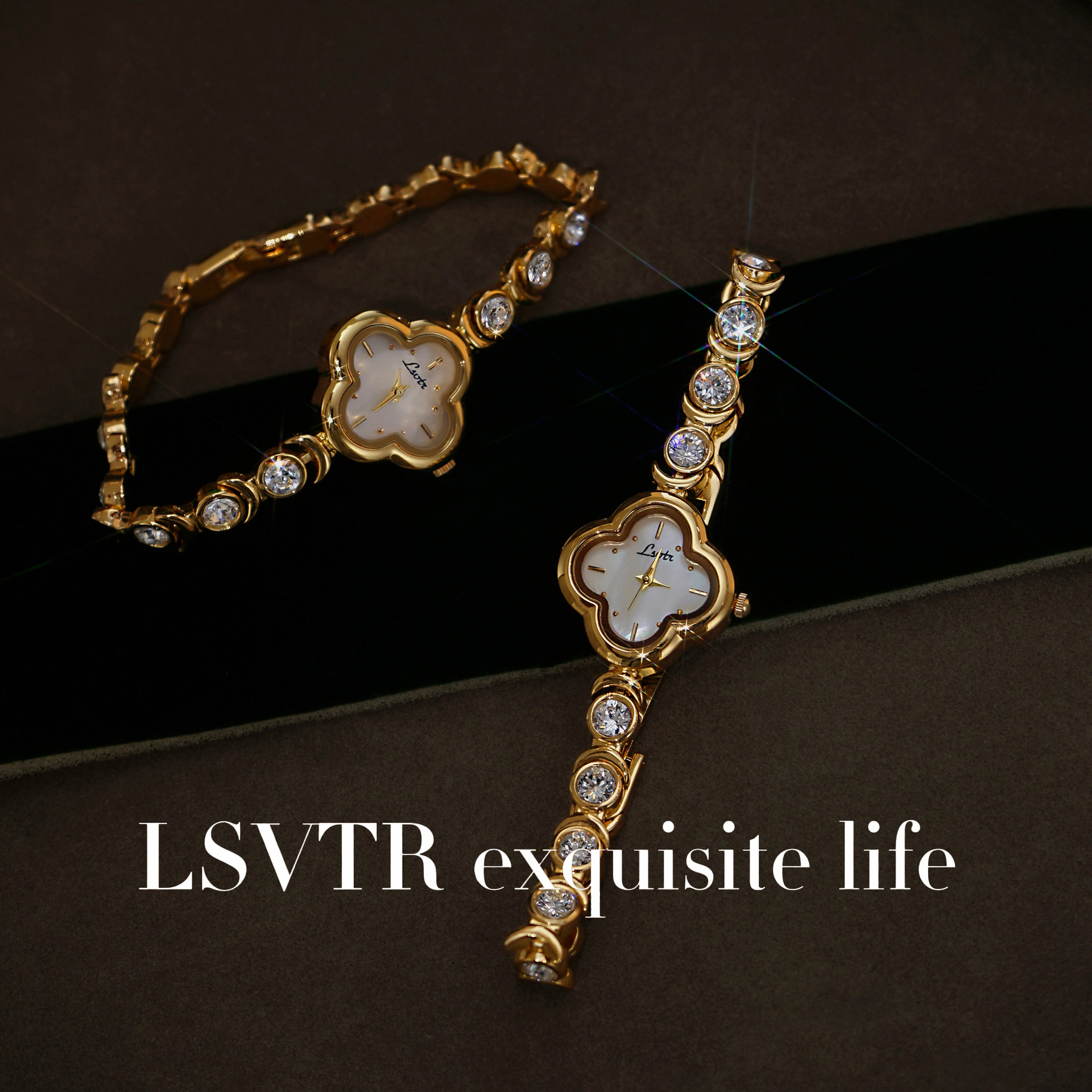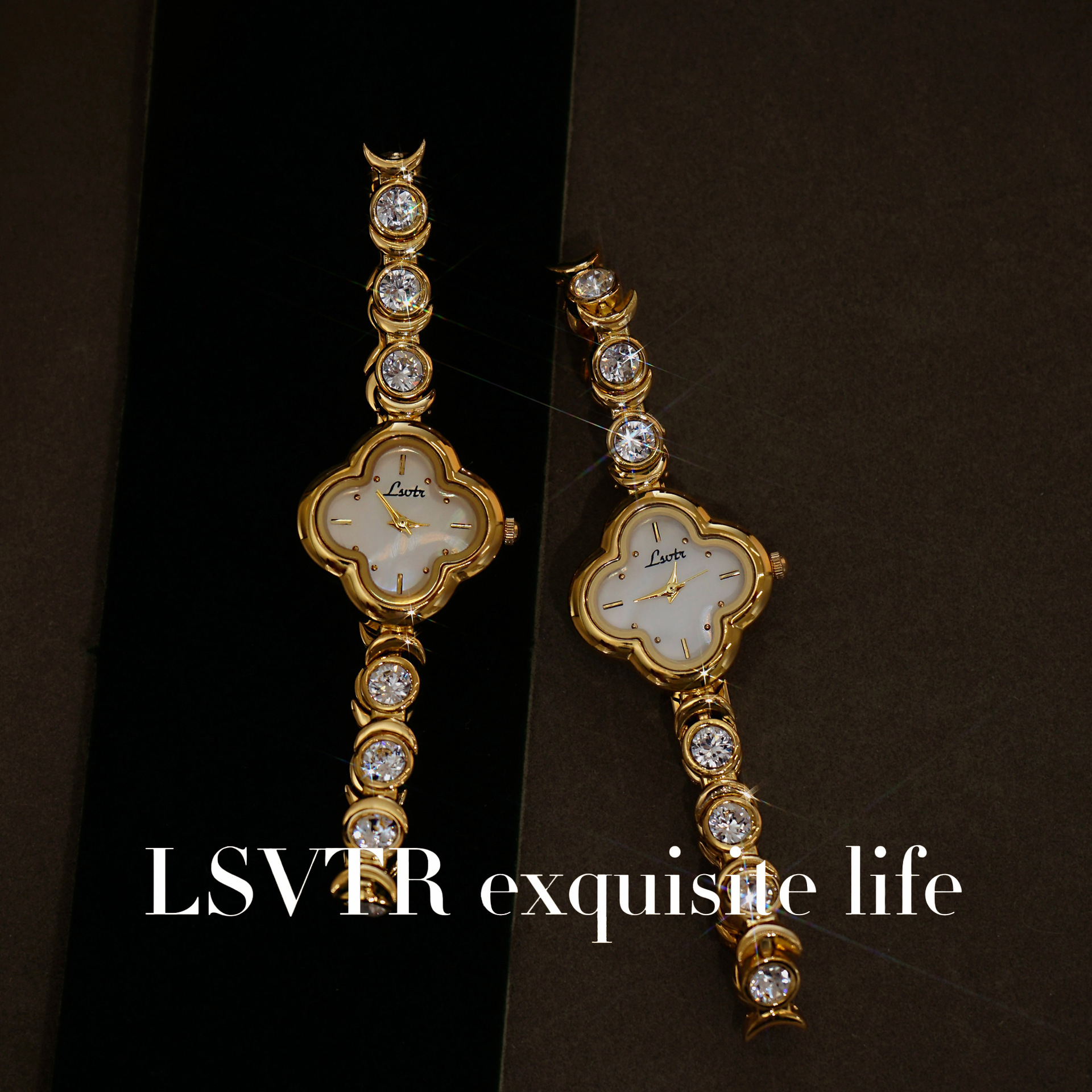 LSVTR genuine goods New TikTok Live Selling Four-leaf Clover French Antique Full Diamond Bracelet Watch Women