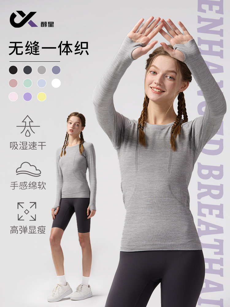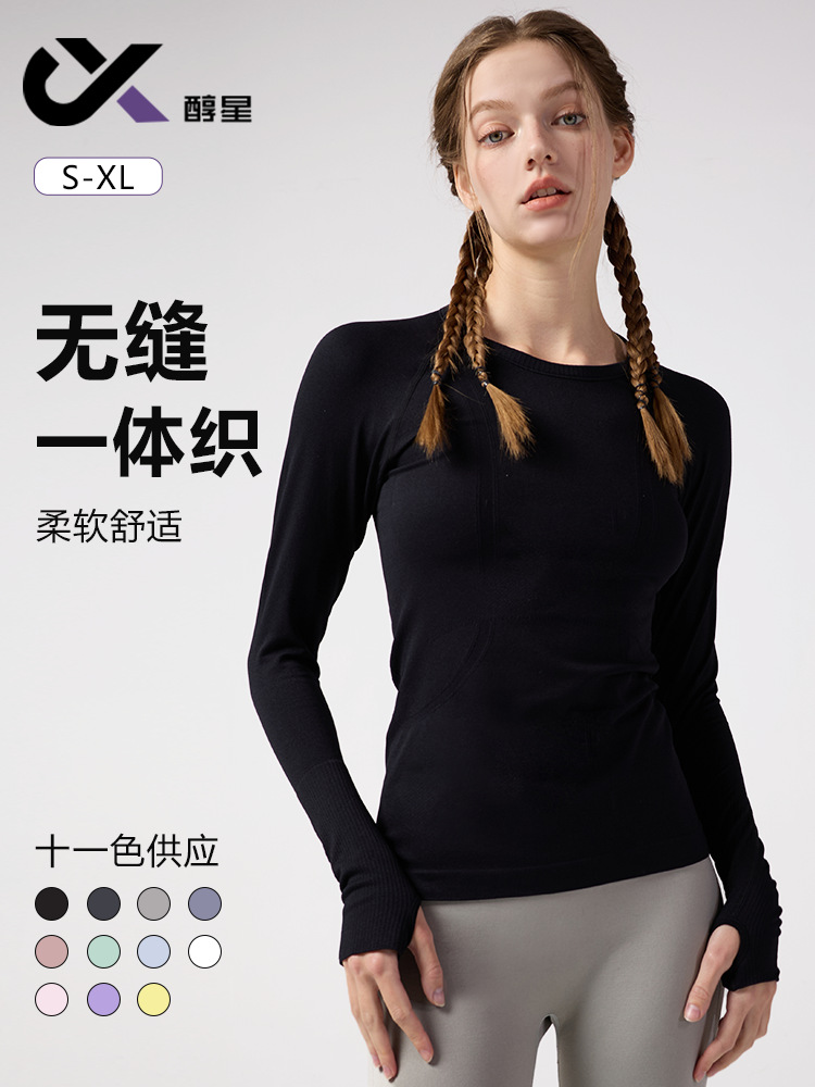 Lulu Long-Sleeved Yoga Clothes, Autumn and Winter Sports Tops, Women's Fitness Clothes, Long-Sleeved Running Quick-Drying Clothes, Pilates Training Clothes