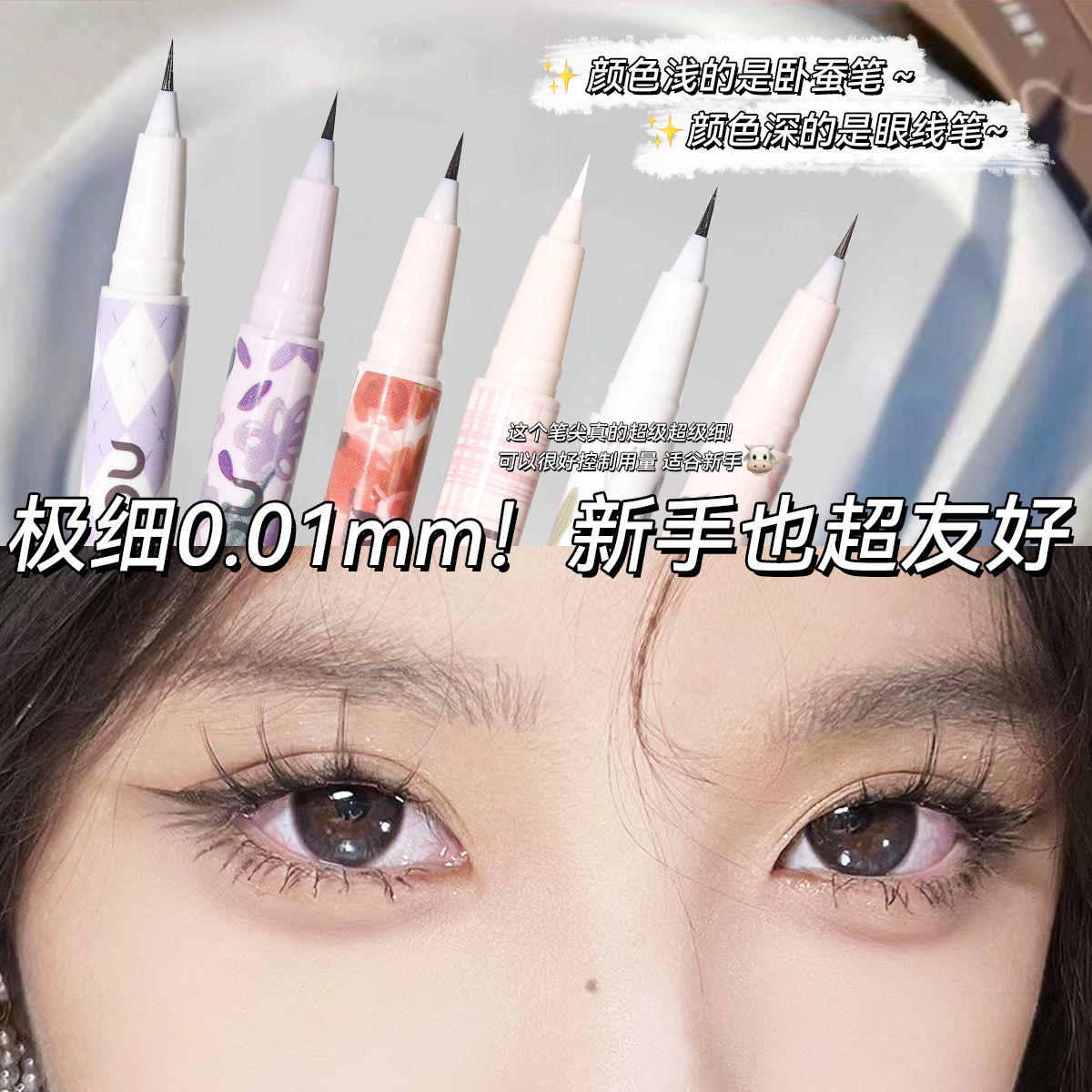 Makeup NOVO Double Pupil Cut Water Very Fine Eyeliner Pen Waterproof Sweat-proof No Sizzy Lower Eyelash Silkworm Eyeliner Pen