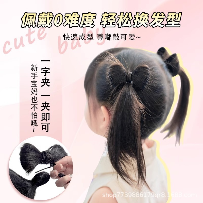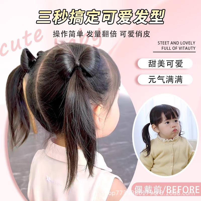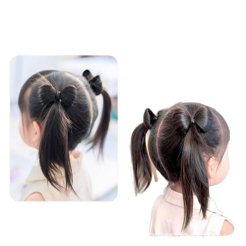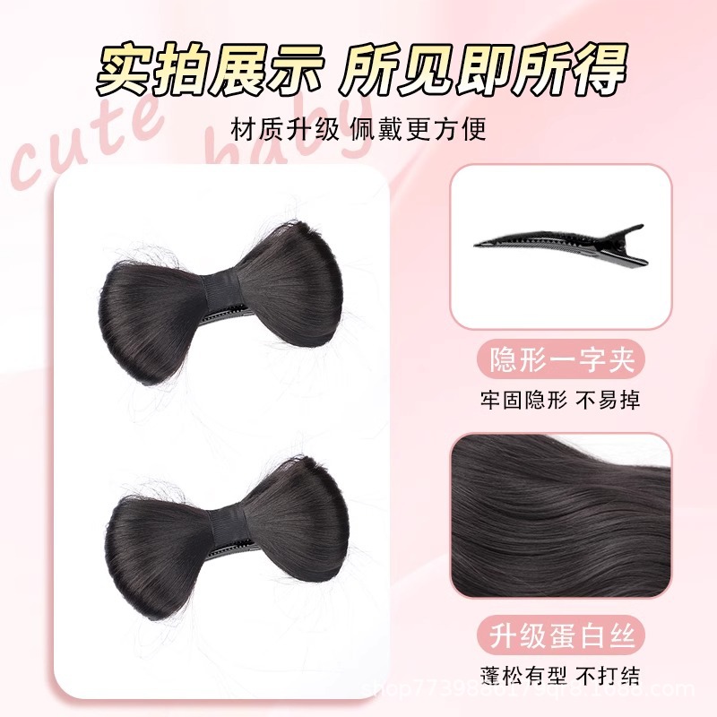 Meatball Head Wig Grab Clip Children's Bow Lightweight Flower Bud Long Wharf Braid Hair Bun Antique Hanfu Fake Hair Bag