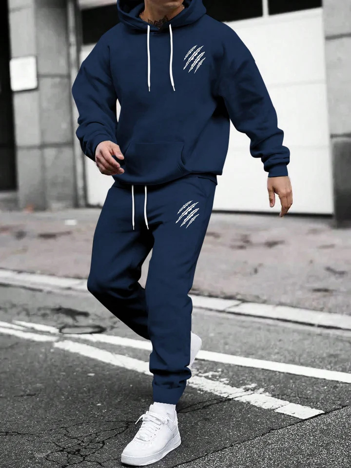 Men's Autumn and Winter Sweatshirt + Pants Animal Paw Print Sports Suit Women's Fashion Casual Street Hoodie Ready Stock