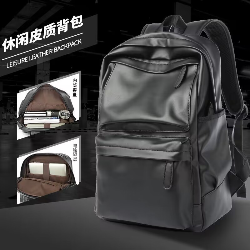 Men's backpack leather large capacity travel backpack junior high school student schoolbag trendy men's bag computer bag