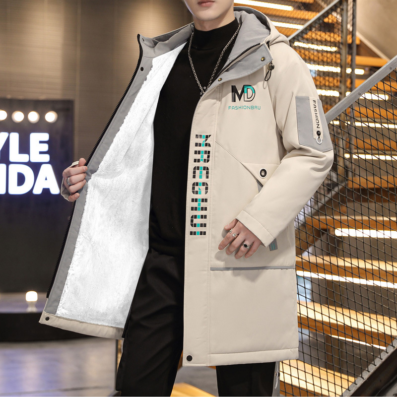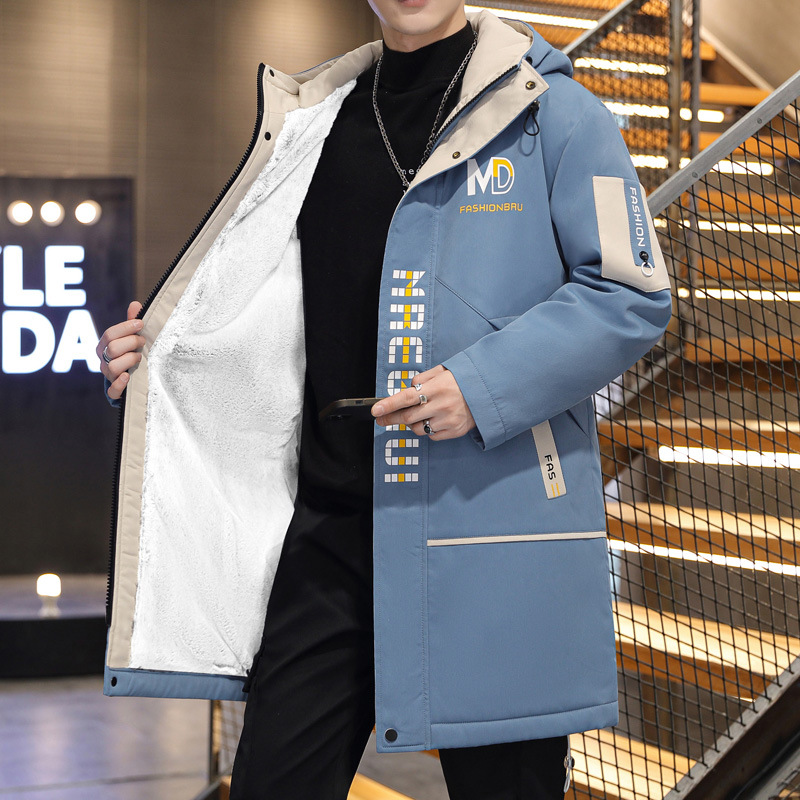 Men's cotton-padded coat mid-length 2024 new fashion brand thickened fur collar frock parka winter men's cotton-padded jacket coat