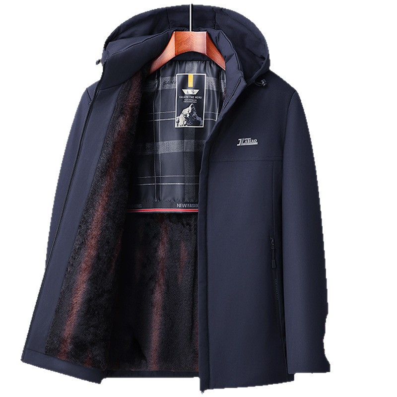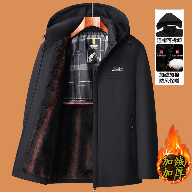 Middle-Aged and Elderly Men's Winter Jackets, Fleece-Lined and Thickened, Warm Cotton Coats for Dads, Middle-Aged Men's Clothing, Stylish Men's Cotton Jackets