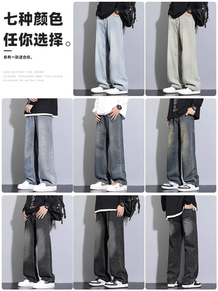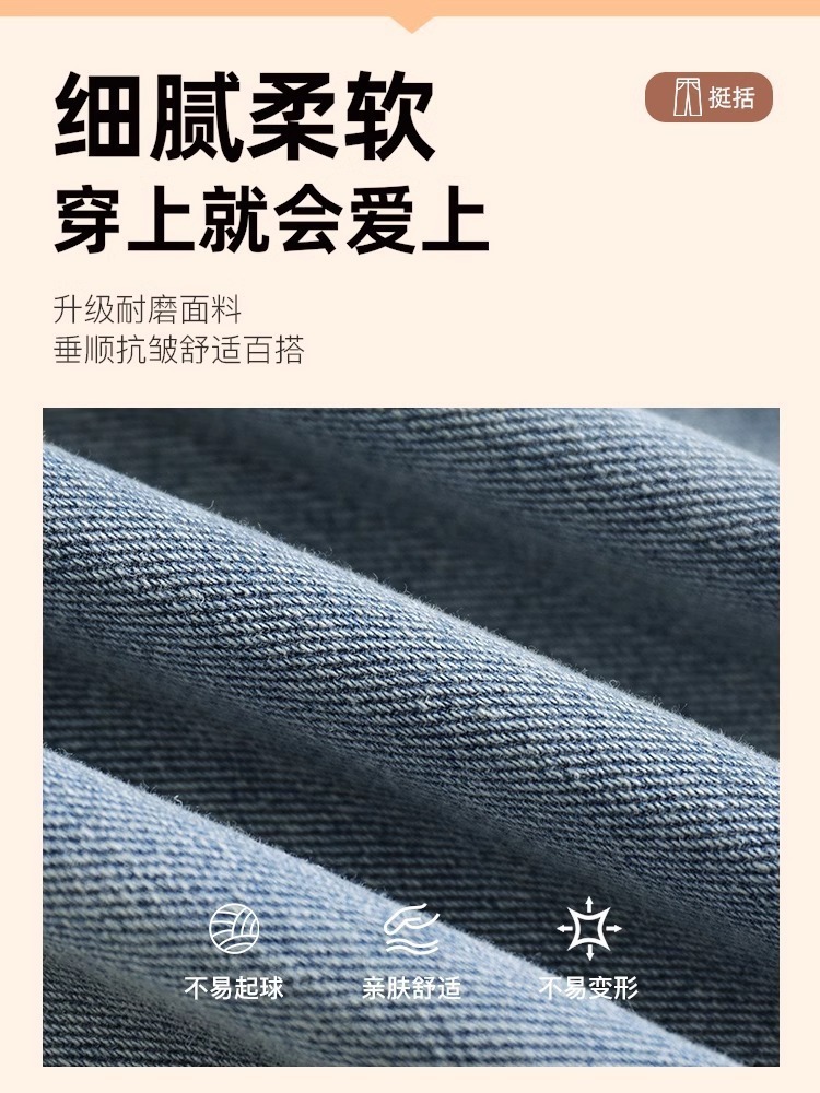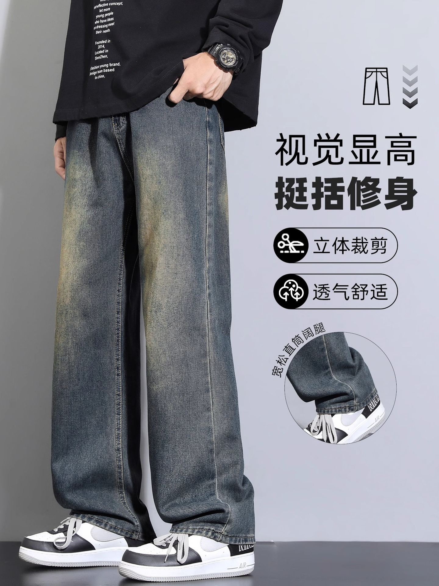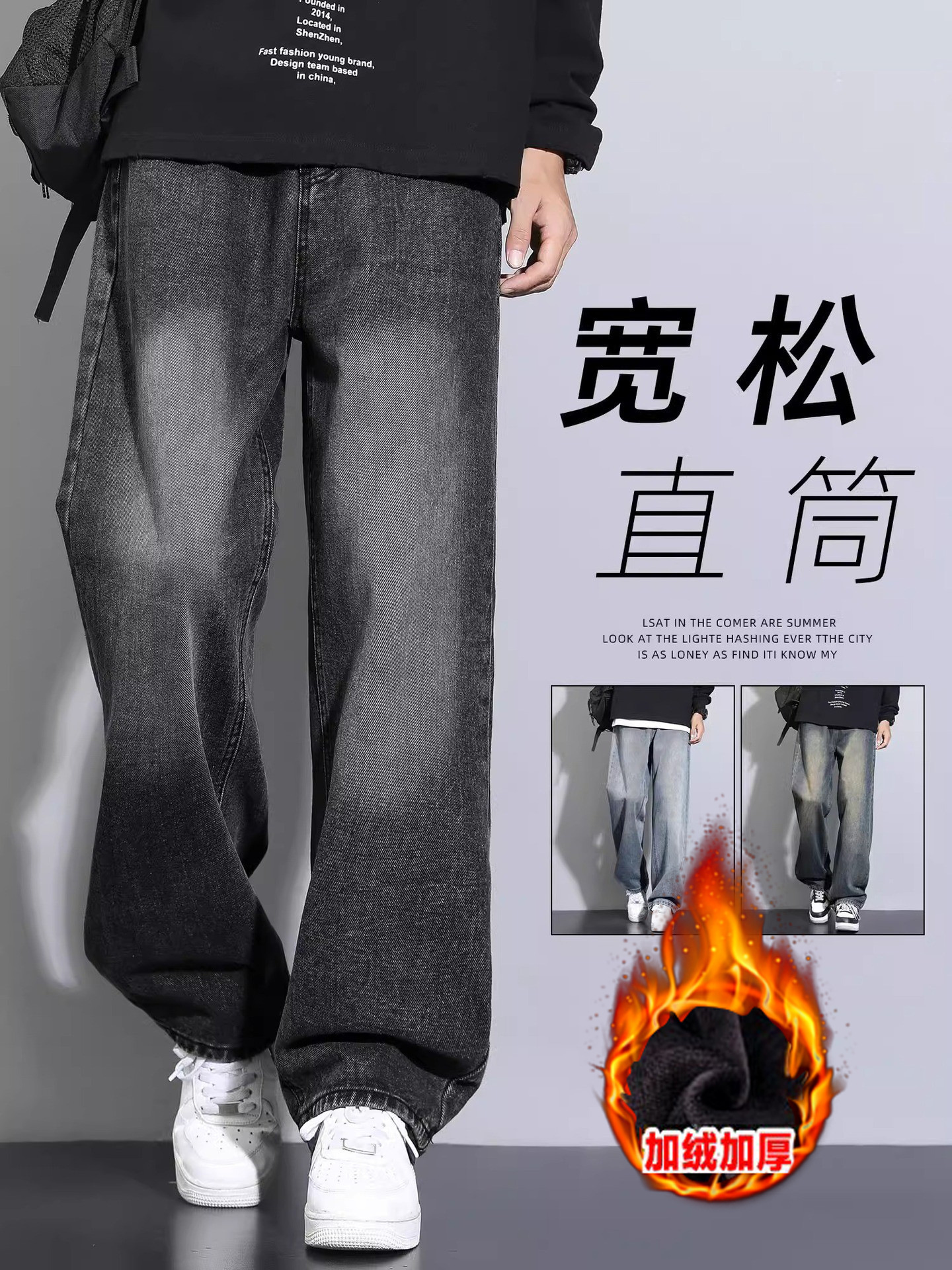 Men's Fleece-Lined Jeans Autumn and Winter New Style Men's Long Pants American High Street Style Men's Straight-Leg Pants Loose Casual Trousers