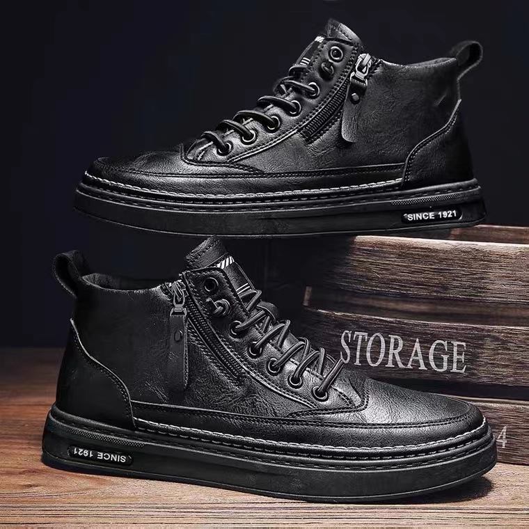 Men's High-top Casual Leather Shoes Men's Trendy All-match Sneakers Non-slip Outdoor Tooling Shoes Autumn and Winter Men's Shoes Trendy Shoes