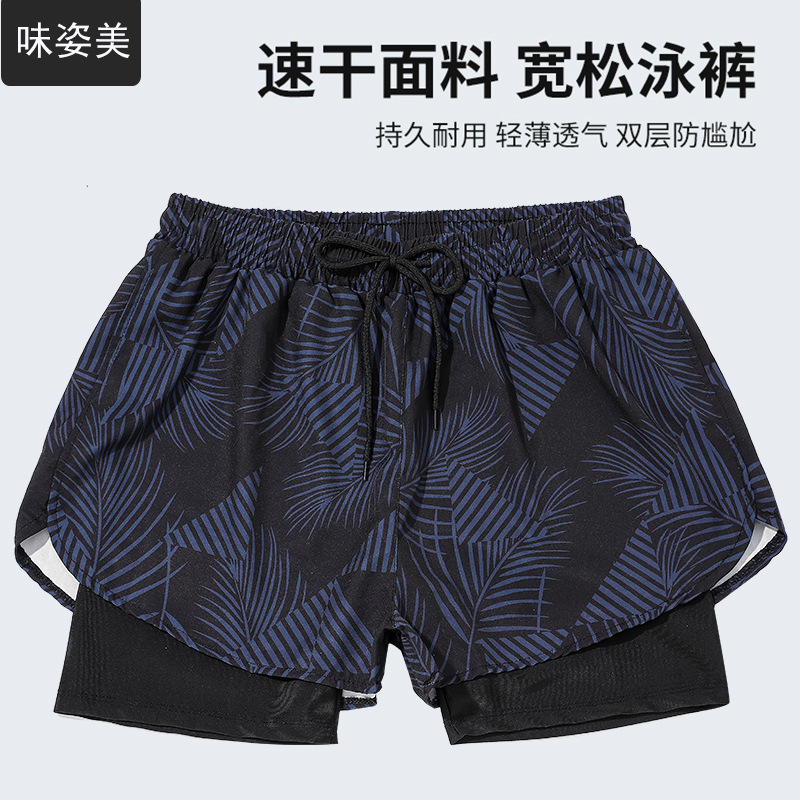 Men's hot spring swimming trunks men's 2023 new anti-embarrassment double-layer quick-drying plus size Swimming trunks swimming equipment