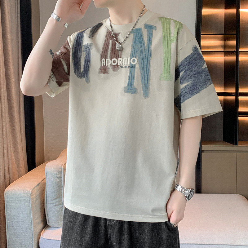 Men's Ice Silk Short-sleeved T-shirt Summer Thin Trendy Brand Youth Printed Men's Clothes Pure Round Neck T-shirt