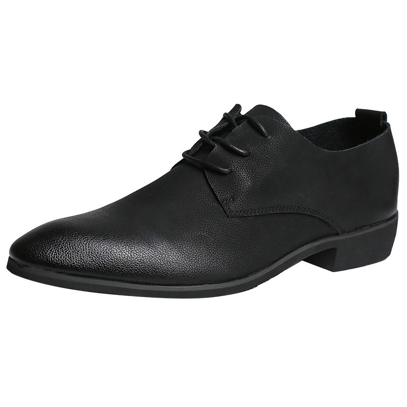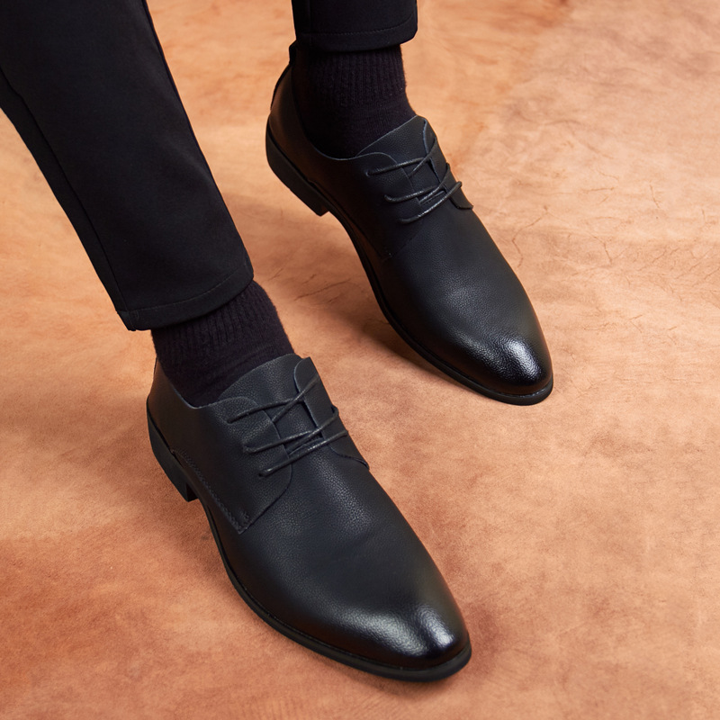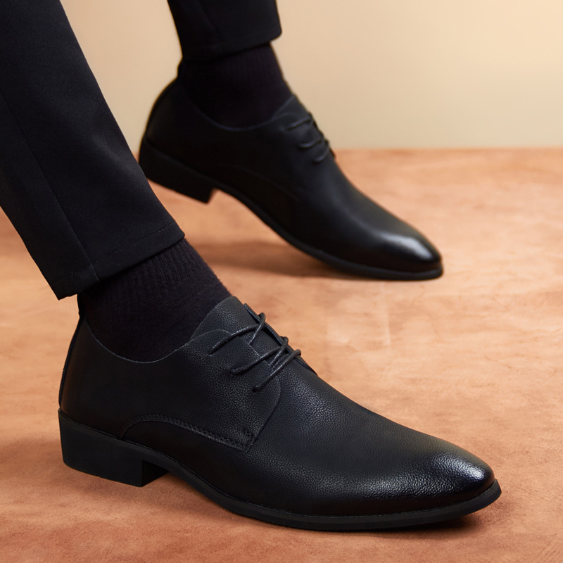 Men's Leather Shoes Casual Shoes Youth Trend Leather Pointed Soft Leather Soft Bottom Increased Business Dress Support