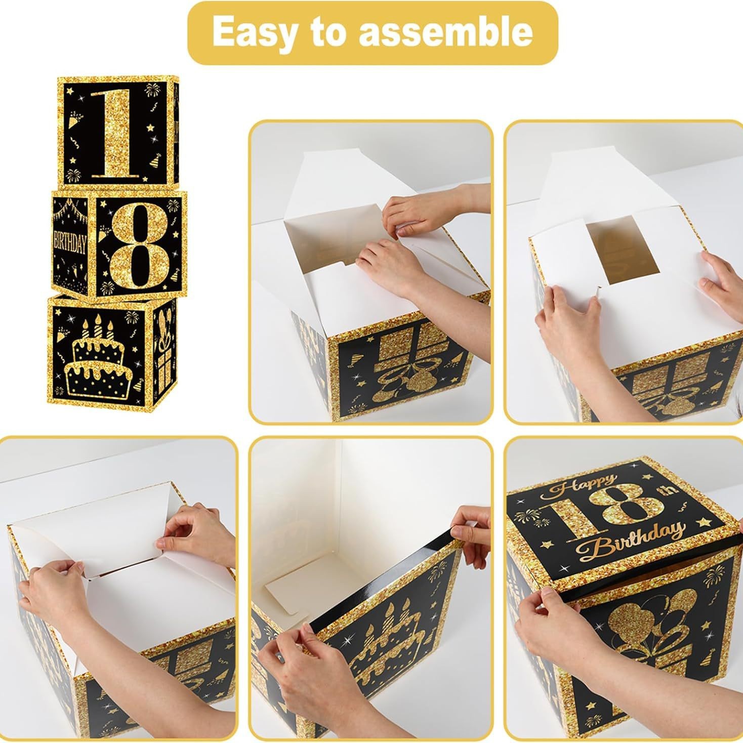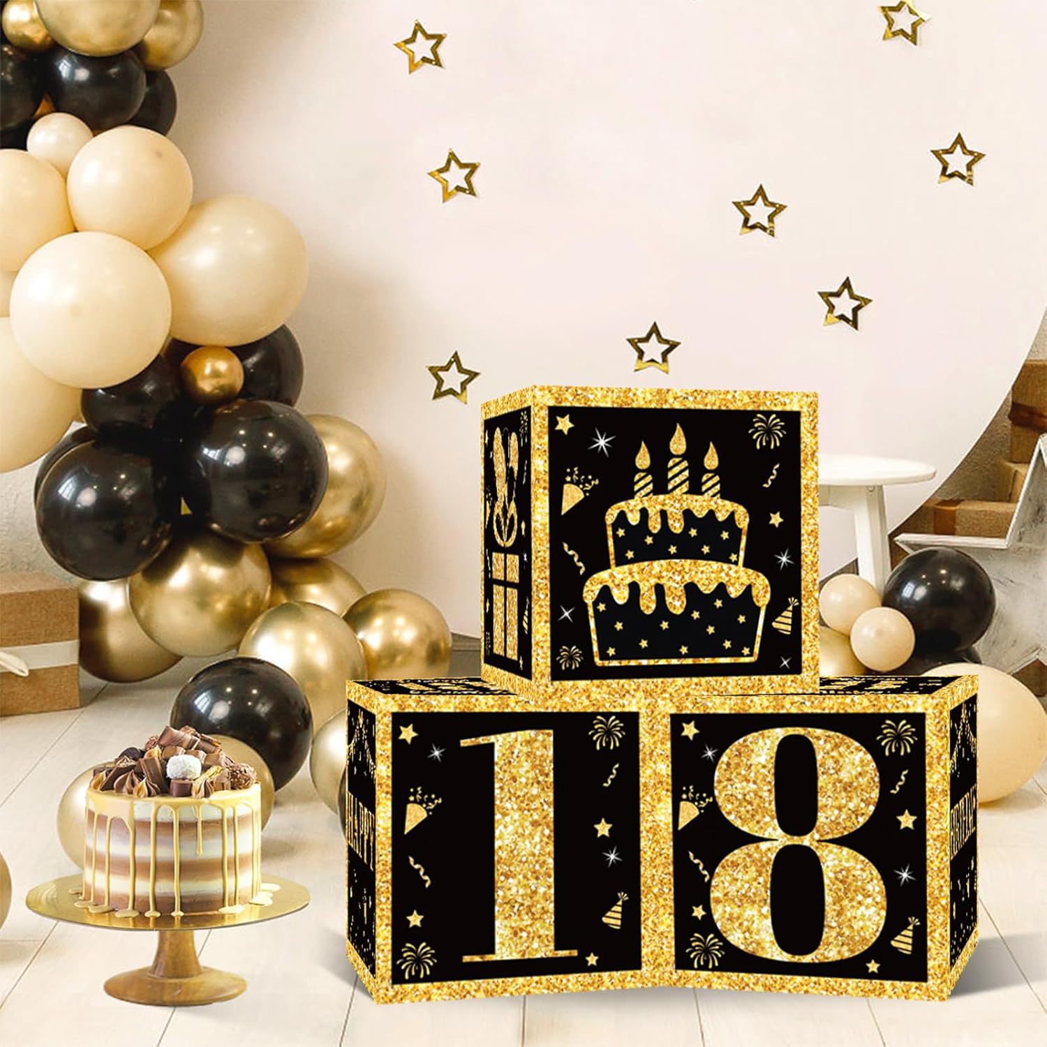 Men's or Boy's 18Th Birthday Decoration Box 3 Pieces Black and Gold Happy 18Th Birthday Gift Box